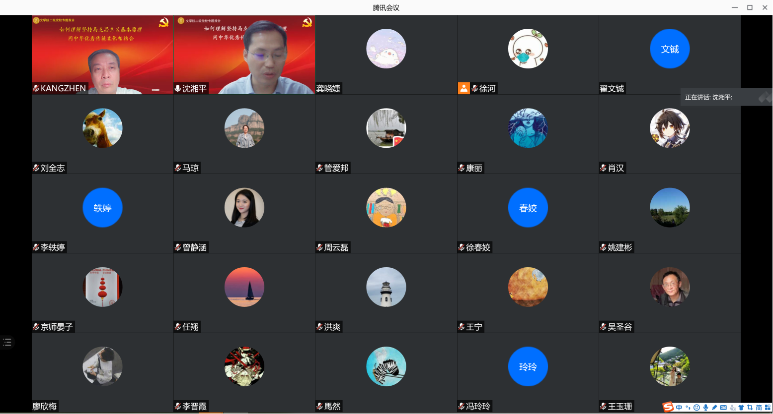 为贯彻校党委关于暑期前组织干部教师集中学习培训的工作方案,7月16日晚,yl23455永利党委组织二级党校专题培训,特邀澳门永利北京文化发展研究院执行院长、澳门永利全球化与文化发展战略研究中心(珠海)主任沈湘平教授,以《如何理解坚持马克思主义基本原理同中华优秀传统文化相结合》为题进行了专题报告。本次讲座由yl23455永利党委书记康震教授主持,采取腾讯会议的形式,yl23455永利党委理论学习中心组成员,物理学系、新闻传播学院、继续教育与教师培训学院的100多名教师党员认真聆听了讲座。 沈湘平教授从习近平总书记在庆祝中国共产党成立100周年大会上的讲话谈起,围绕“坚持把马克思主义基本原理同中华优秀传统文化相结合”的重要理论观点进行了系统的分析与深入的解读,阐明了马克思主义基本原理与中华民族优秀传统文化相结合的基本意蕴、历史根基与重要前景。 在本次讲座中,沈湘平教授探讨了马克思主义基本原理与中华优秀传统文化相结合的基本意蕴,认为它既是马克思主义基本原理与中国具体实际相结合的应有之义,也具有特殊的理论针对性和现实意义。坚持马克思主义基本原理与中华文化优秀传统相结合的理论思想符合马克思反对教条主义、机械主义的基本原则,也离不开一代代共产党人对中华优秀传统文化的历史传承。最后,沈湘平教授立足于当下百年未有之大变局,从历史与未来的双重视角指出,中国特色社会主义既传承了中华民族的优秀传统文化,又致力于创造人类文明的新形态,具有不可替代的优越性。 康震教授指出,沈湘平教授非常详细地解读了马克思主义基本原理与中华民族结合的若干理论问题,在思考马克思主义继续中国化等方面走在了前沿,既对学术研究有重大指导意义,也对未来的社会实践、思想实践有重大指导意义,留给我们很大的继续思考与探讨的空间。 讲座结束后,参会教师通过留言板向沈湘平教授表示了感谢。沈教授对坚持马克思主义基本原理与中华优秀文化相结合的理论解读,使得参会教师更加深刻地认识到自己肩负的历史重任与时代使命,纷纷表示要切实在学术研究中贡献自己的力量。