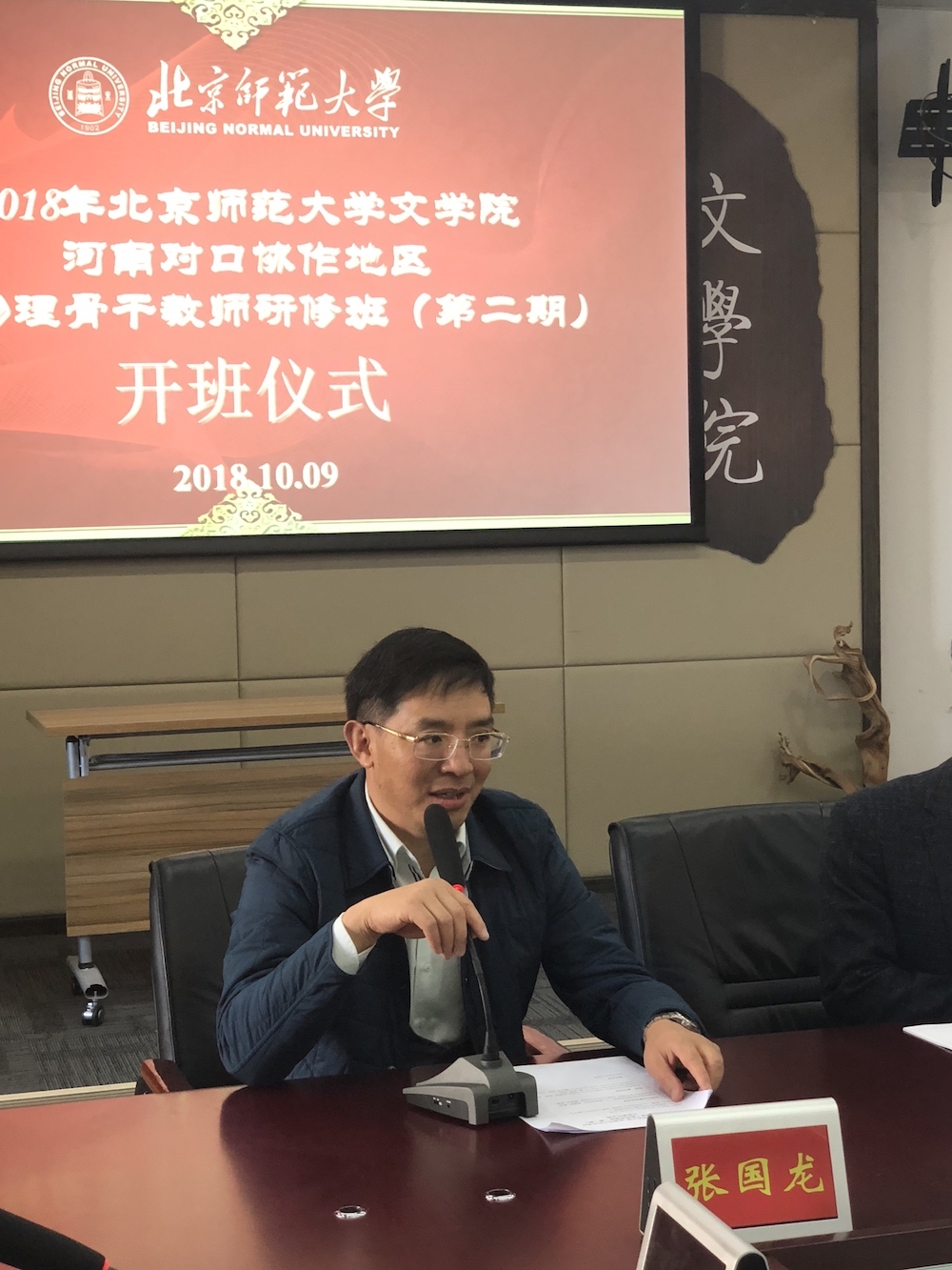 2018年10月9日星期二上午八点半,澳门永利-河南对口协作地区初中物理骨干教师高级研修班(第二期)开班典礼于澳门永利主楼C5049顺利召开。此次典礼由yl23455永利发展与合作中心副主任张帆主持,研修班班长河南省南阳市桐柏县城关一中袁国升老师、yl23455永利发展与合作中心主任张国龙教授及河南省教育厅选派的40位中学骨干教师出席了此次开班典礼。 张国龙教授在开场时坦言,自己的物理很差,因此非常佩服在座的各位老师,并谨代表北师大向各位老师表示热烈欢迎。同时他也表示,各位老师在工作之后能有近一个月的时间外出学习,这是非常难得也让人羡慕的。在学法指导方面,张教授指出高校专家的授课方式与一线教师的讲课不尽相同,他希望在座老师能够转变思路和观念,培养广阔的胸襟,用一种通俗易懂的方式看待知识与教学。最后他衷心祝愿各位老师能够在师大生活愉快,学有所成。 随后,河南省南阳市油田第七中学的石磊老师作为学员代表发表讲话,他首先对各位领导对于此次培训所给予的重视与投入表示感谢。他提到,习总书记将教育和教师工作提到了前所未有的政治高度,教师是立教之本、兴教之源,是国家富强、民族振兴、人民幸福的重要基石。教师不仅要比学生知道得更多,更要比学生认识得深,还要用发展的眼光看待世界和人生,以研究者的定位投入学习和工作。教育形势日新月异,终身学习成为每一位教师的必然选择,而这次培训就是一次很好的机会。最后他代表全体学员郑重承诺,将珍惜此次来之不易的培训机会,摆正位置,转变角色,尊重老师,虚心求教,严格遵守培训纪律,共建学习资源,力求共同成长。 最后,yl23455永利发展与合作中心副主任张帆详细介绍了本次的培训安排和纪律要求,至此,本次研修班开班典礼顺利结束。yl23455永利也会全力配合此次研修班的推进,相信在大家的共同努力下,此次培训定会取得圆满成功。