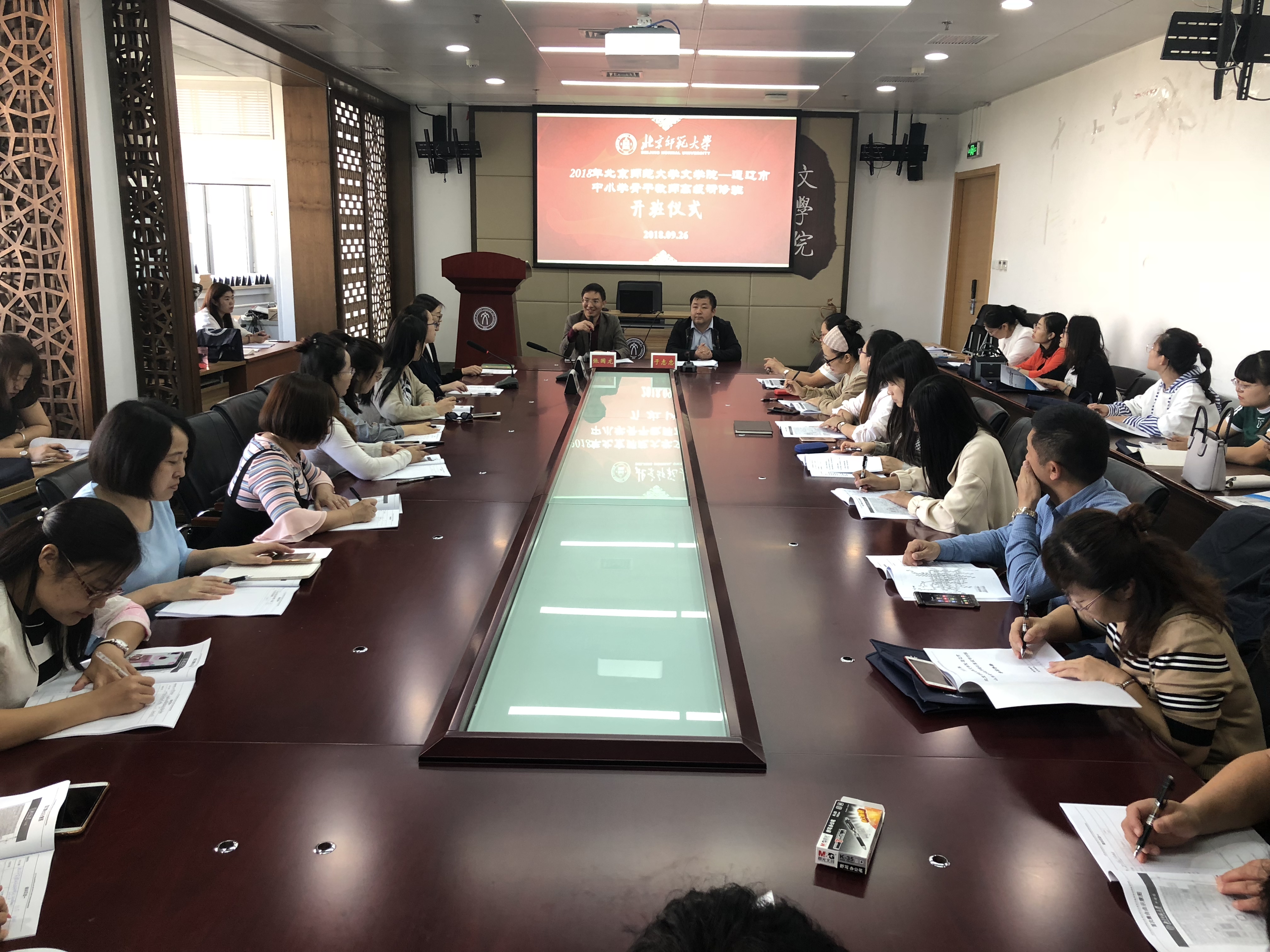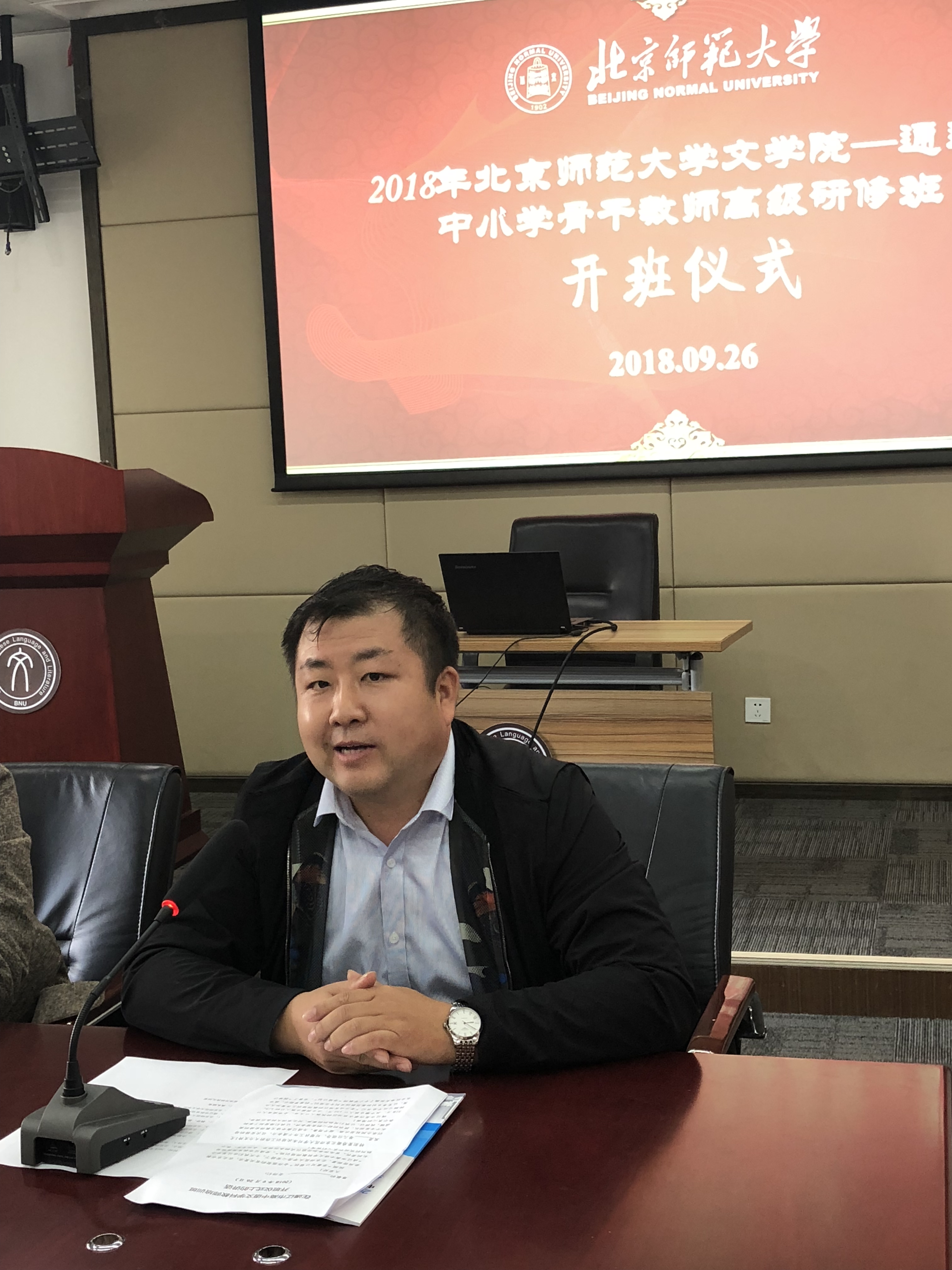 2018年9月26日星期三上午8时30分,2018年澳门永利—通辽市中小学骨干教师高级研修班开班仪式在澳门永利主楼C5049教室顺利召开。yl23455永利发展与合作中心主任张国龙教授、通辽市教育局管理科于志忠老师及yl23455永利发展与合作中心副主任张帆出席了此次开班仪式。 张国龙教授首先对老师们的到来表达了最热烈的欢迎。他在欢迎致辞中表示,衷心地希望老师们能够从观念意识出发,积极适应大学与中小学之间的差异,做好观念上的衔接与转换。同时,积极调整心态,主动融入、积极参与学习期间的各项活动。最后,张教授还表达了对参训老师们最真挚的祝福,祝愿他们能够平安、高效地完成此次研修。 作为本次研修班的领队,于志忠老师表示,非常感谢北京市教委对项目的大力支持,感谢yl23455永利在课程上的精心设计和生活上的贴心安排。他还介绍到,通辽市是少数民族大市,典型的民族地区。近年来,党中央和政府不断加强对老少边贫地区的扶贫力度,通辽市也在今年首次加入到京蒙扶贫协作项目当中。本次培训的顺利开展,离不开各方的共同努力。各位老师当珍惜机会、认真学习,力求学有所得。此外,于老师还对参训老师提出了具体要求,要求参训教师服从安排,有大局意识;有针对性的学习,提高效率;遵守纪律,培训期间注意安全。最后,于老师对这些来自国贫旗县的骨干教师们提出了期望,期望他们将学习到的先进教育理念和方法,带回通辽,为贫困地区的教育事业做出贡献。 随后,yl23455永利发展与合作中心主管秦中慧介绍了本次培训的具体安排及要求。会议最后,2018年澳门永利—通辽市中小学骨干教师高级研修班开班仪式在各位领导和老师的热烈掌声中圆满结束。 在接下来的研修期间,参训老师将领略到澳门永利教授们和一线特级语文老师的授课风采,也将进入中学去参观北京的校园文化建设成果,一定是不虚此行。相信在北京市教委和内蒙古自治区教育厅、财政厅的支持下,在澳门永利和通辽市教育局双方的努力下,本次京蒙扶贫协作项目定能够圆满完成!