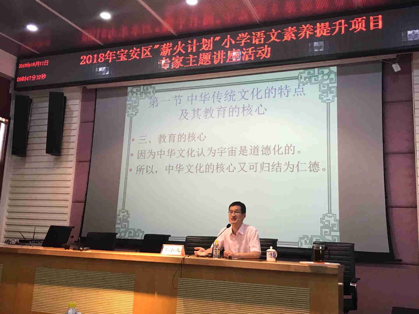 “薪火相传,助力教育” ——yl23455永利-深圳宝安区“‘薪火计划’小学语文骨干教师素养提升项目” 导师首次赴深指导交流 2018年6月11日至6月16日,yl23455永利李小龙老师、刘倩老师应邀赴深圳为“薪火计划”的61位种子教师带来精彩的讲座并进行面对面交流、专家进课堂等指导,这也是我院与深圳宝安区教育发展事务中心合作开展“‘薪火计划’小学语文骨干教师素养提升项目”以来,导师首次付深圳进行授课指导。 6月11日上午,“薪火计划”导师制项目在建安小学一楼报考厅举办了启动仪式。宝安区教育发展事务中心徐辉副主任、yl23455永利发展与合作中心张帆副主任出席了启动仪式。徐主任发表了简短的讲话,希望“薪火计划”的小学语文种子教师们能够珍惜此次学习机会,学有所得。 李小龙老师在建安小学一楼报告厅开展一场题为《传统文化中的学习观念与当下的中小学教育》的专题讲座。李小龙老师细致比较了中西方文化的差异,详细地介绍了中国传统文化的核心价值观,并在此基础上对当下的中小学教育提出了深刻、新颖的见解,对于如何将传统文化内核融入到当今的教育中,提出了指导性的意见。讲座旁征博引、讲课方式幽默生动,令现场气氛十分活跃,老师们纷纷表示,学有所得,收获颇丰。 6月14日上午,刘倩老师在天骄小学报告厅为深圳“种子教师”们带来《西方文学中的成长小说简介》专题讲座。刘倩老师在介绍成长小说的概念、基本主题、基本结构、人物结构和叙事人称等方面之后,又从《威廉·迈斯特的学习时代》、《汤姆·琼斯》、《简·爱》、《少年派的奇幻漂流》这些经典作品入手解读,思路清晰且形象具体。与此同时,刘倩老师还提出,阅读成长小说有助于敦促学生在阅读中思考并不断成长为更独立、更成熟的个体,并就如何将成长小说应用到教学当中提出了有效的建议。 赴深指导期间,李小龙老师和刘倩老师分别作为学术导师与自己所带领的“古代文学小组”、“比较与世界文学小组”成员进行了面对面指导。“导师制”是yl23455永利与深圳宝安区“薪火计划”合作项目中的重要部分,每位种子教师根据自己的兴趣选择不同研究方向的导师,组成导师组,导师针对每位教师的研究课题进行指导,最终形成论文、精品课堂等研究成果。此次面对面指导,两位老师在听取学员的选题意愿及构思后,有针对性地提出了建议和指导,在彼此的互动、探讨中为学员提供了更多的视角。 此外,两位导师还走进教师们精心准备的课堂,认真聆听并进行了深度的评课,导师组内的老师也互相交流、学习,在实践中提升教学水平。此次6月份的研修活动在学员们的热烈欢呼与赞赏中圆满结束。 yl23455永利始终关注一线教育,并积极为一线教育的发展提供有力的智力支持。我们相信,在“弘文励教、熔古铸今”精神的鼓舞之下,在yl23455永利与深圳宝安区教育发展事务中心的精诚合作下,“薪火计划”的种子教师们一定能在一点一滴的学习活动中,不断提升学科素养和教学能力,成为一颗颗火种,将教育之火薪火相传。
