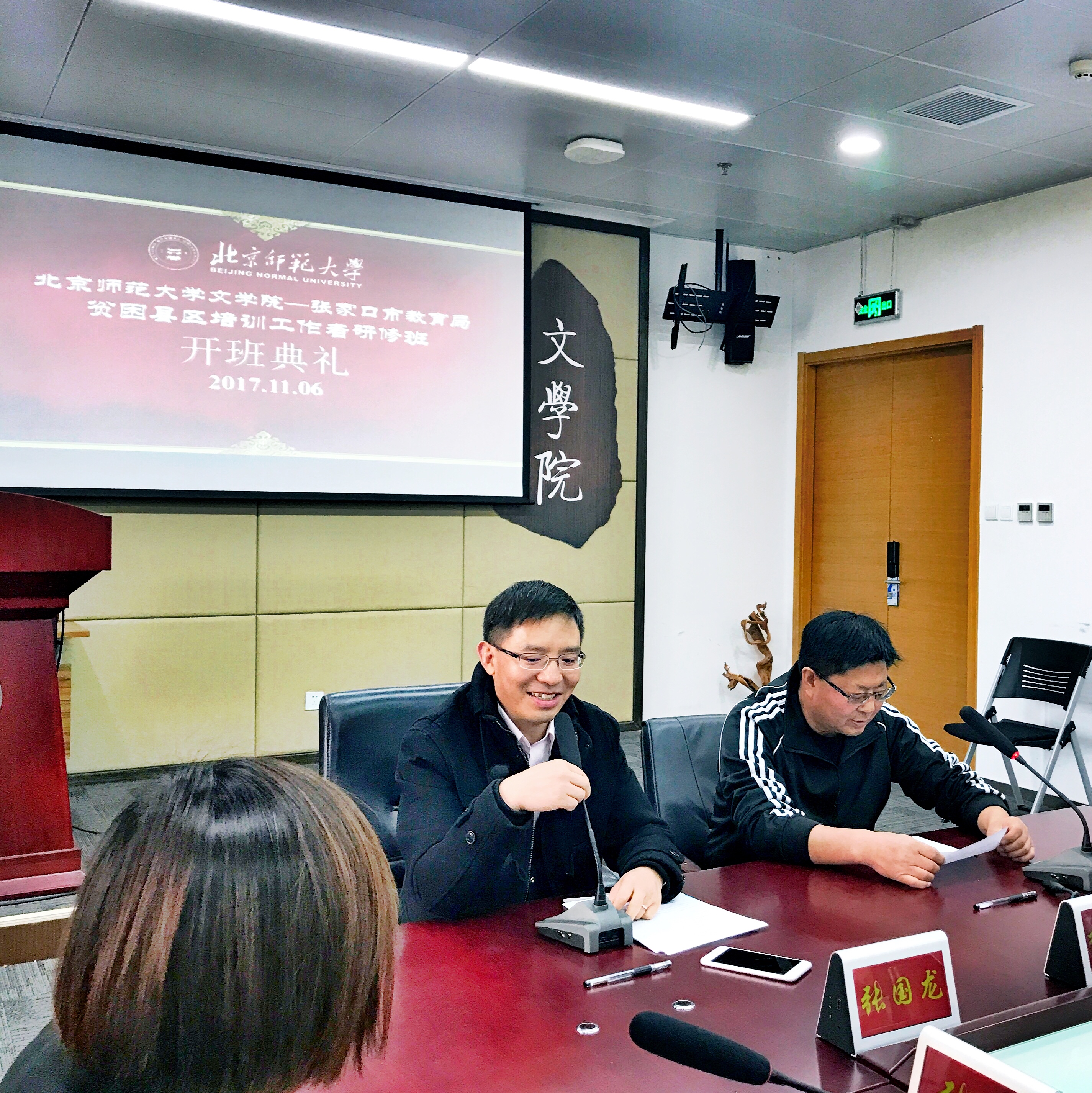 2017年11月6日星期一上午8时30分,yl23455永利张家口市贫困县区培训者研修班开班典礼于澳门永利后主楼5049教室顺利召开。此次典礼由yl23455永利发展合作中心副主任张帆主持,张家口市教育局师教科李良民科长以及yl23455永利院长助理张国龙出席了此次开班典礼。