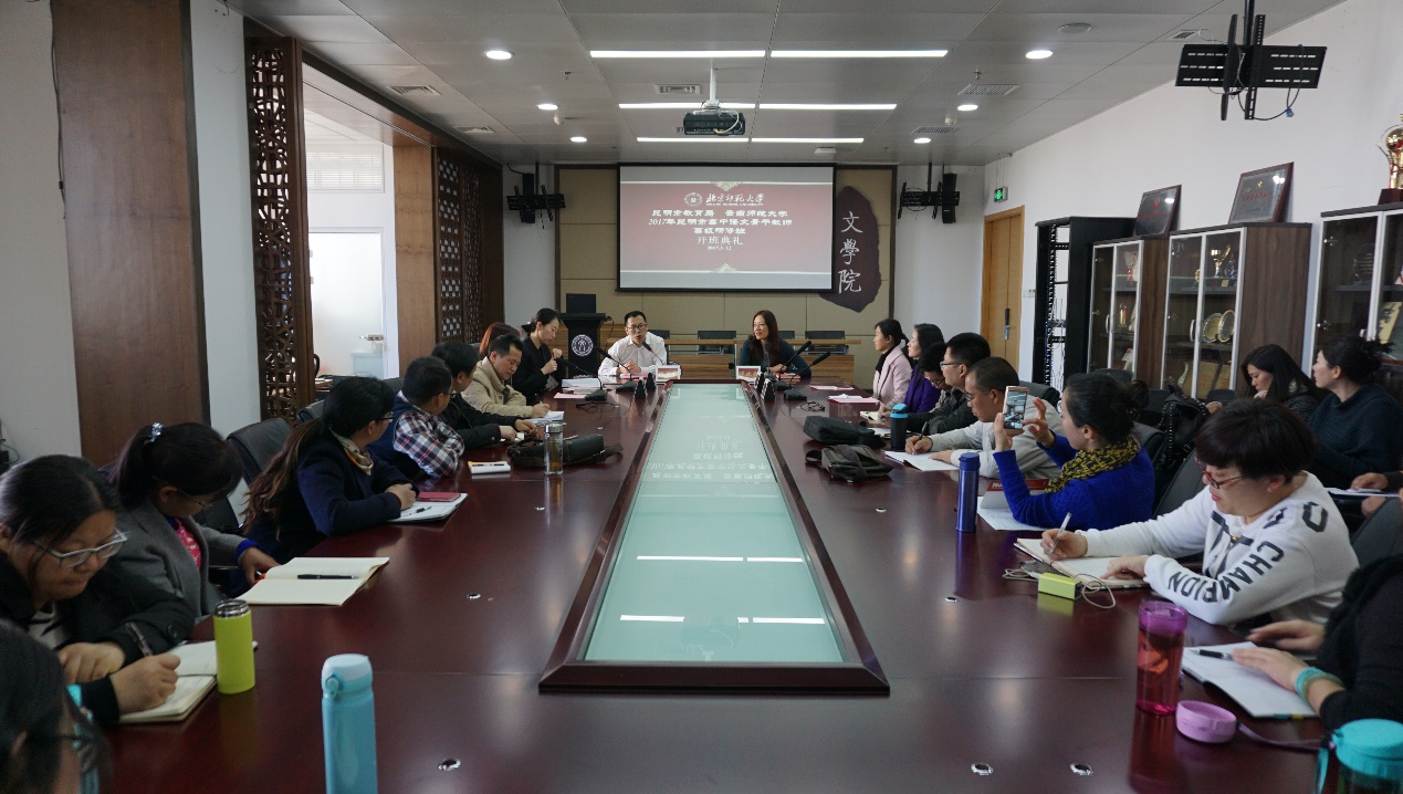 三月的北京天蓝云淡,春光灿烂。2017年3月12日星期日下午1时30分,yl23455永利—昆明市高中语文骨干教师高级研修班开班典礼于澳门永利主楼C区5049顺利召开。此次典礼由yl23455永利发展与合作中心副主任张帆负责主持,yl23455永利分党委副书记周云磊、云南师范大学yl23455永利谭晓云教授、yl23455永利发展与合作中心执行主任向飞、云南师范大学成人继续教育学院张春梅老师出席了此次开班典礼。
