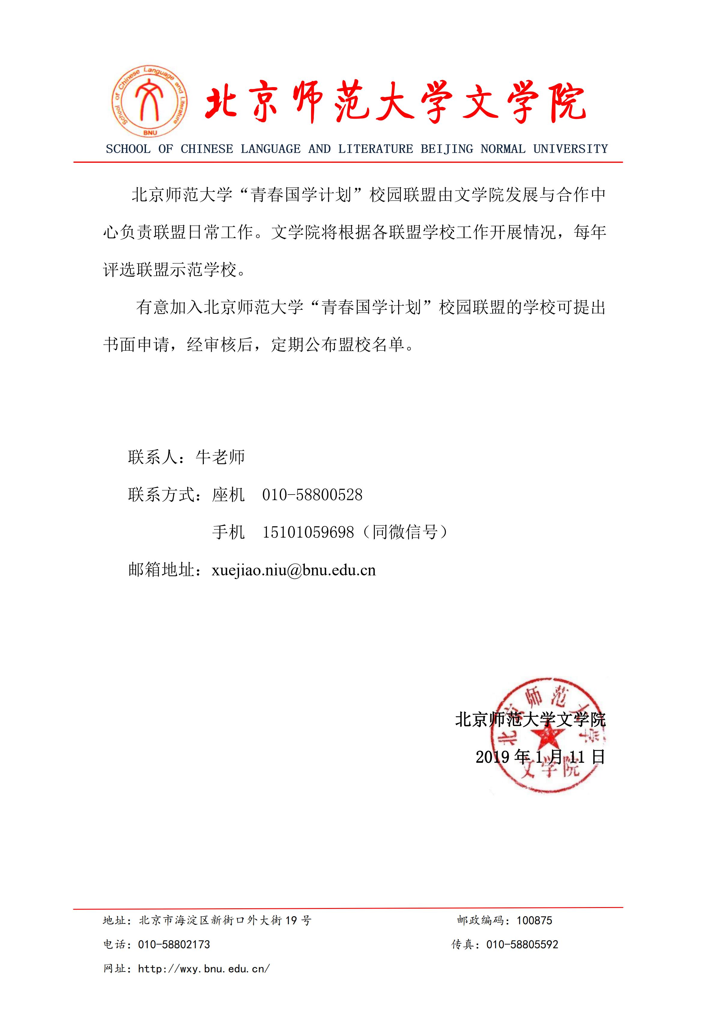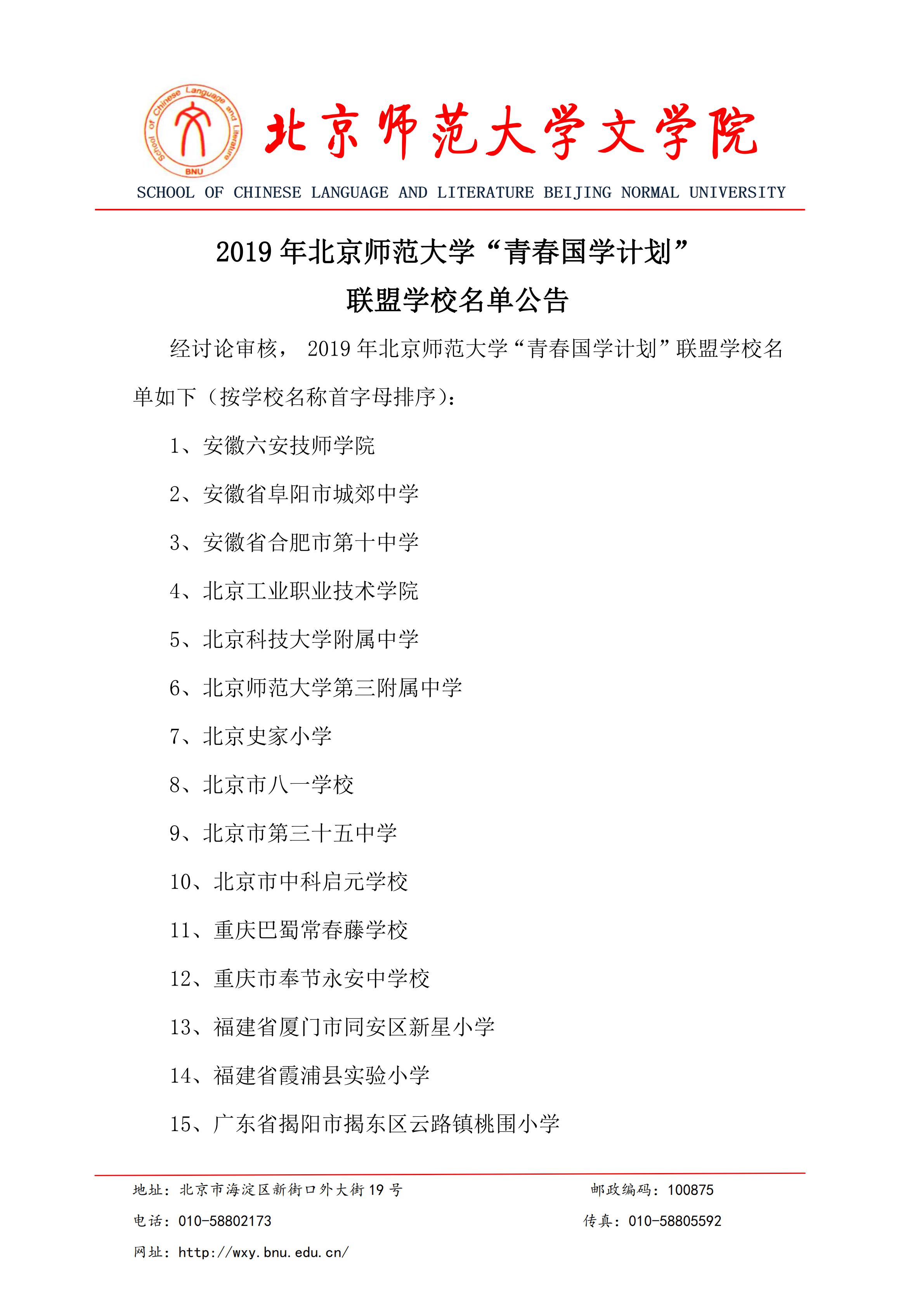 2019年澳门永利“青春国学计划”联盟学校名单公告