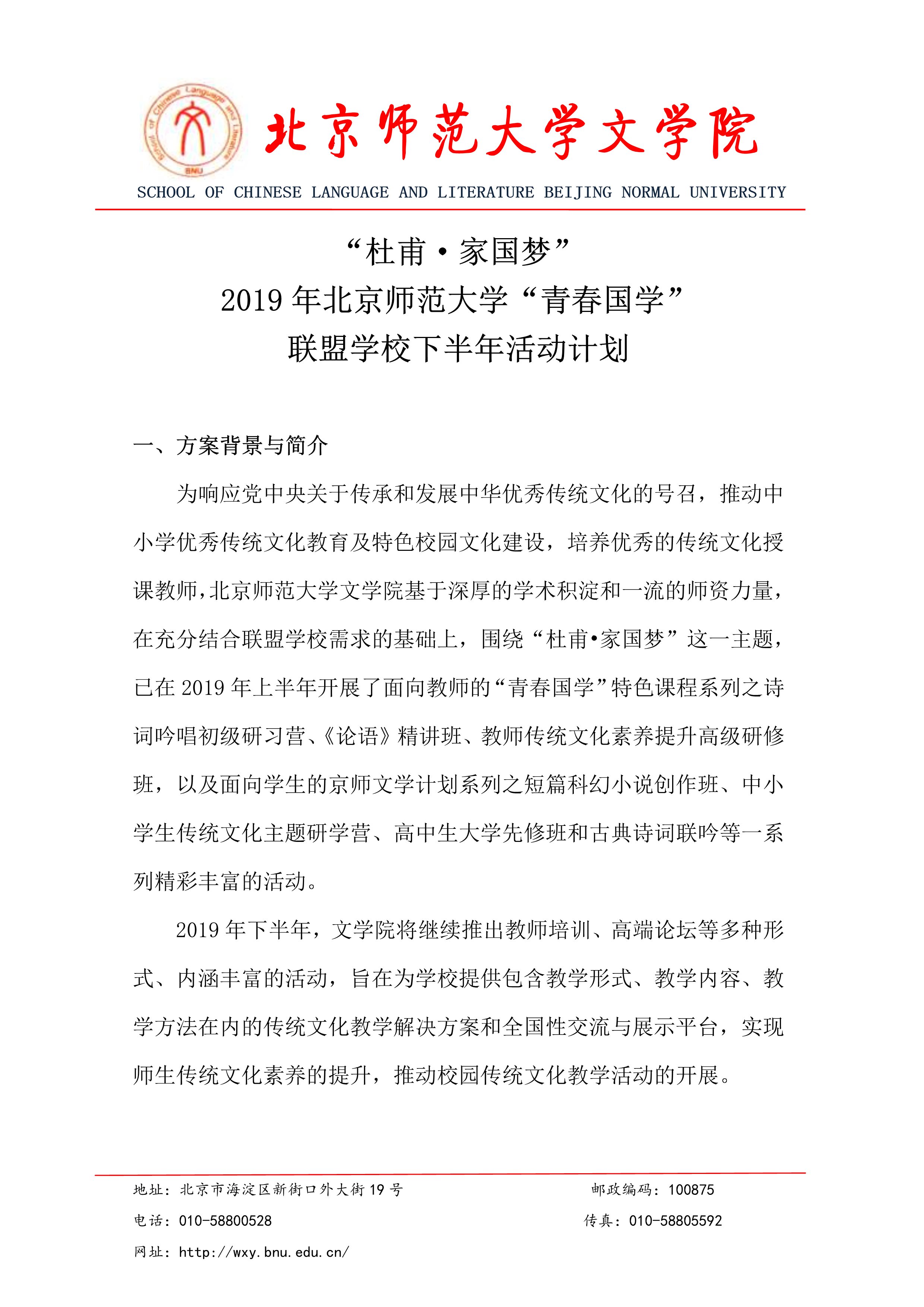“杜甫·家国梦”2019年澳门永利“青春国学”联盟学校下半年活动计划
