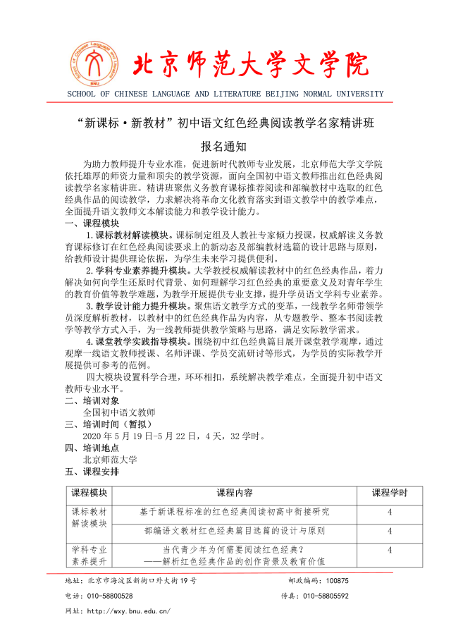 "新课标·新教材"初中语文红色经典阅读教学名家精讲班报名通知