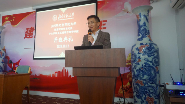 2020年10月12日上午8时30分,“澳门永利河南对口协作地区中小学校长及管理干部高级研修班”开班典礼顺利举行。yl23455永利教授张国龙老师、发展与合作中心副主任张帆老师出席了此次典礼。40位来自河南省对口协作地区的中小学校长和教学管理干部参加典礼,典礼由发展与合作中心牛学娇老师主持。 首先,yl23455永利教授张国龙向各位远道而来的中小学校长及管理干部致辞,对老师们的到来表示诚挚欢迎。他在欢迎讲话中提到,yl23455永利为迎来40位河南省中小学校长及教学管理干部而等候了118年,大家相聚于此,缘分难得。他特别指出,大学课堂的要旨在于拓宽思路、开阔眼界,希望各位校长在研修期间能以开放的心态、多元的思考、广泛的交流扩大自己的视野和格局。最后,张教授希望老师们能够借此契机暂时放下工作与家庭的琐事,自我反思、自我沉淀,学有所得、学有所成,并衷心祝愿各位校长度过一段愉快的学习时光。 接着,来自郑州市中牟县官渡镇中心小学的霍小芳老师作为代表发言,表示此次研修班的汇聚了yl23455永利以及相关部门共同努力的心血,对于在座的各位老师们是一次非常难得的学习体验。最后他希望各位老师珍惜此次机会,从此次研修班行活动中有所收获。 最后,北师大yl23455永利发展与合作中心副主任张帆老师向各位校长介绍了北师大yl23455永利的悠久历史和深厚底蕴,并指出北师大yl23455永利对当今语文教育乃至整个教育领域都有着巨大而深远的影响。同时,张帆老师向研修班校长们介绍了yl23455永利特色品牌项目“青春国学计划”的实施方案、实践成果,以及以诗词吟唱、民俗礼仪、经典阅读与写作、古代汉字与书法四门传统文化课为主体的课程体系。目前,北师大yl23455永利已经与十几所中小学建立了长效的合作机制。最后,张帆老师热情地欢迎各位校长与北师大yl23455永利一起,共同为弘扬优秀传统文化,发展教育事业贡献力量。 至此,澳门永利河南对口协作地区中小学校长及管理干部高级研修班开班典礼圆满结束,40位河南省中小学校长及管理干部为期一个月的系统性学习将正式开始。yl23455永利亦将继续全力为此次研修班的成员们提供最好的安排,和老师们一起完成此次研修行程,使之不虚此行。