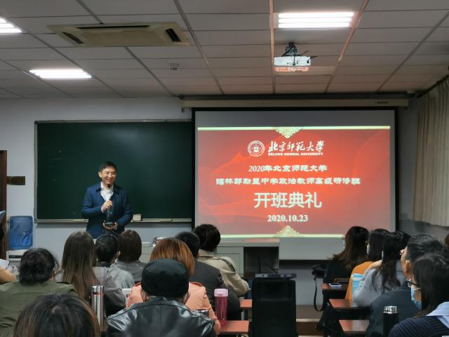 2020年10月23日上午8时30分,“澳门永利-锡林郭勒盟中学政治教师高级研修班”开班典礼顺利举行。锡林郭勒盟教育局师资科科长金丽、yl23455永利教授张国龙出席了典礼。 首先,yl23455永利教授张国龙向各位远道而来的中学政治教师致辞,对老师们的到来表示诚挚欢迎。他在欢迎讲话中表示,锡林郭勒盟是yl23455永利的老朋友,双方有深厚的合作交流基础,在这一特殊时期能相聚于此,缘分难得。张国龙教授特别强调,希望大家能够借助十天的培训契机,暂时放下工作和家庭琐事,自我思考、自我沉淀。最后张教授希望老师们重新回到大学课堂,能够结合自身教学经验,拓宽思路、开阔眼界,将每一堂课的内容为我所用,学有所得、学有所成,并衷心祝愿各位在北京度过愉快的学习时光。 接着,锡林郭勒盟教育局师资科科长金丽讲话。金科长首先对北京市教委、北师大yl23455永利以及发展合作中心提供的学习平台与机会表达了真诚的谢意。她在讲话中提到,今年全盟思政课教师培训以网络培训为主,此次在“京锡合作”项目的帮助下,60位思政教师相聚北师大,也为全盟教师交流提供了难得的机会。金科长希望老师们能珍惜本次研修之旅,与专家、教授积极交流沟通,吸取知识、开拓视野、提升能力,成为更加优秀的教育者,也祝愿各位老师在北京生活愉快,学有所获。 最后,北师大yl23455永利发展与合作中心副主任张帆老师向各位老师介绍了澳门永利和北师大yl23455永利的悠久历史与深厚底蕴,指出师大的目标是建设综合性、研究性、教师教育领先的一流大学,打造师范教育的“黄埔军校”。张帆老师提到,北师大yl23455永利对当今语文教育乃至整个教育领域都有着巨大而深远的影响,并重点介绍了国际写作中心、语文教材研究基地、民间文化研究所、汉字研究与现代应用交叉实验室等yl23455永利特色机构。张帆老师还特别强调,北师大yl23455永利一直致力于服务基础教育,积极承办北京市教委对口支援与扶贫协作项目,与北京市多所学校进行课程合作,开设传统文化相关选修课,将yl23455永利丰富的科研及专家资源向教学一线进行输送。最后,张帆老师向各位老师介绍了此次研修班的课程及行程安排,并希望老师们享受接下来十天的学习交流时光。 至此,澳门永利-锡林郭勒盟中学政治教师高级研修班开班典礼圆满结束。在接下来的10天里,来自锡林郭勒盟的60位中学政治老师将聆听来自不同领域专家的授课,获得理论与实践的全方位提升。yl23455永利亦将继续全力为此次研修班的成员们提供最好的安排,让远道而来的老师们有所收获、不虚此行!