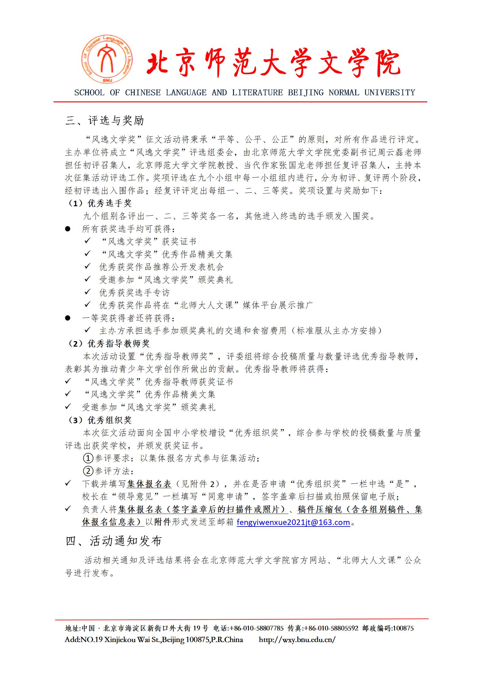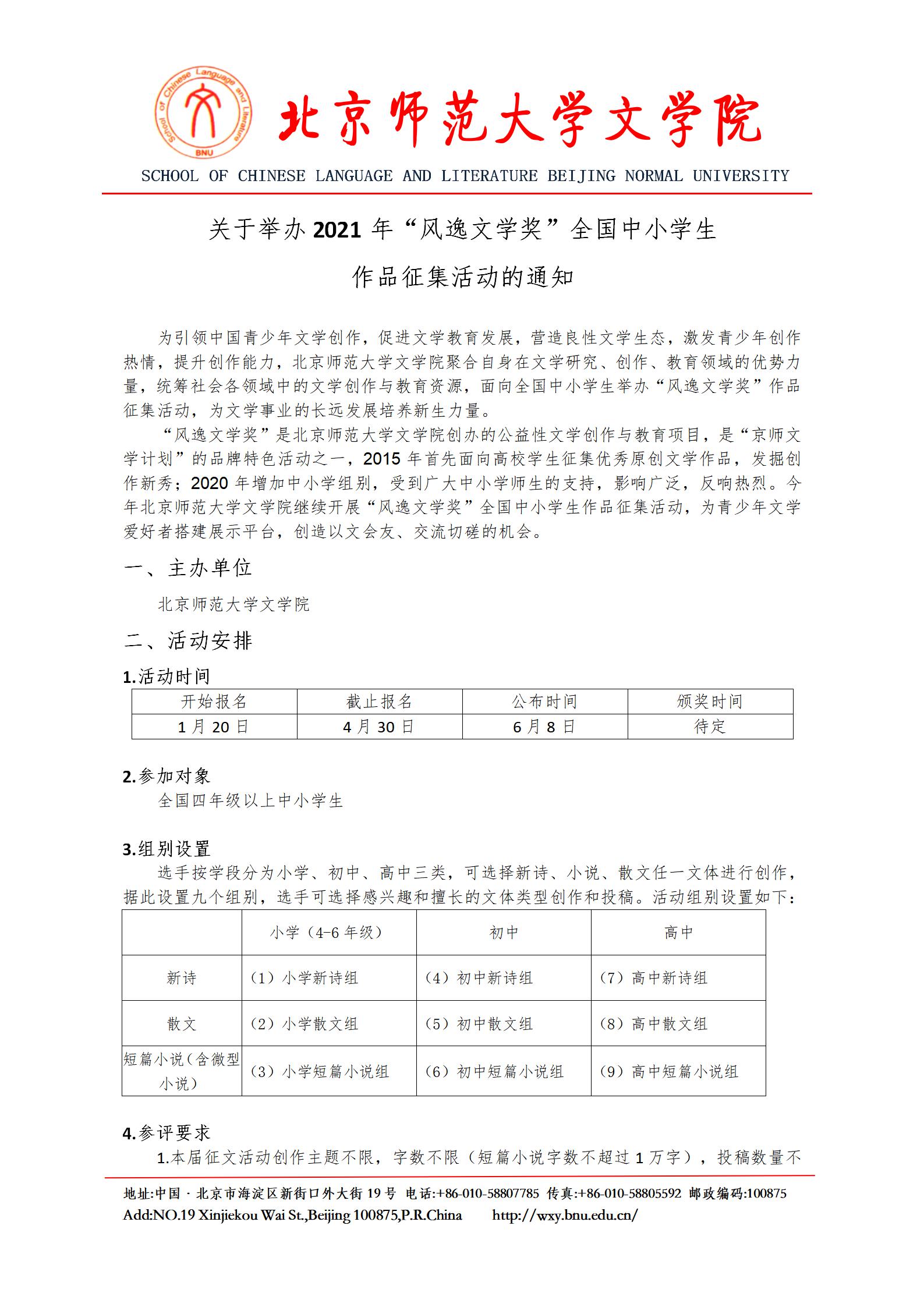 关于举办2021年“风逸文学奖”全国中小学生 作品征集活动的通知