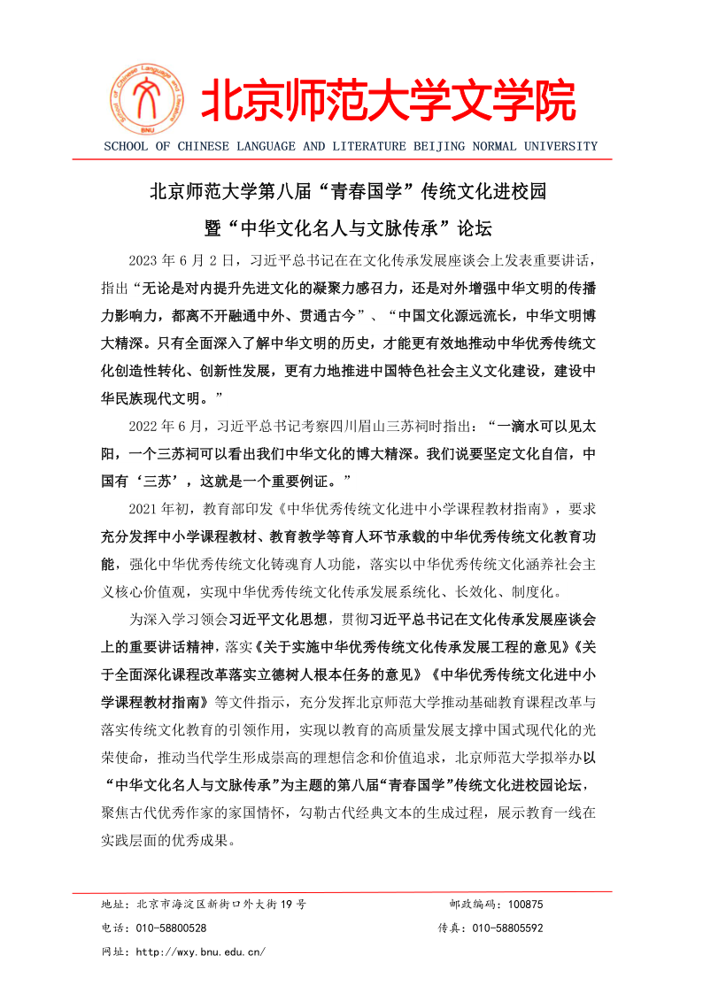 澳门永利第八届“青春国学”传统文化进校园 暨“中华文化名人与文脉传承”论坛会议通知