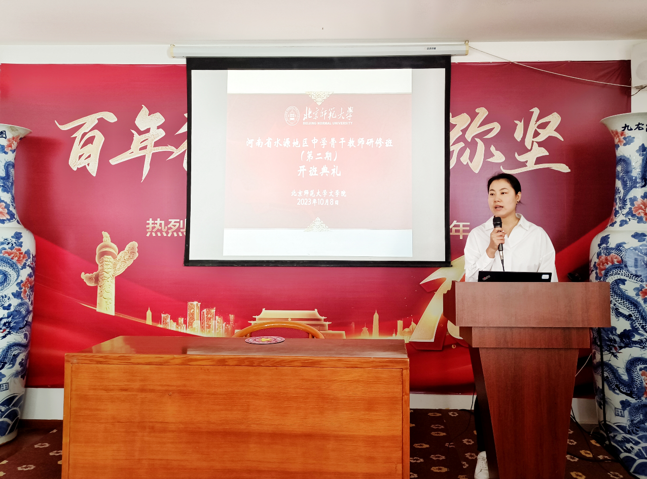 2023年10月8日上午,澳门永利河南省水源地区中学骨干教师研修班(第二期)开班典礼顺利举行。北师大yl23455永利发展与合作中心副主任张帆,参加研修的40位河南中学骨干教师出席了此次典礼。典礼由发展与合作中心牛学娇老师主持。