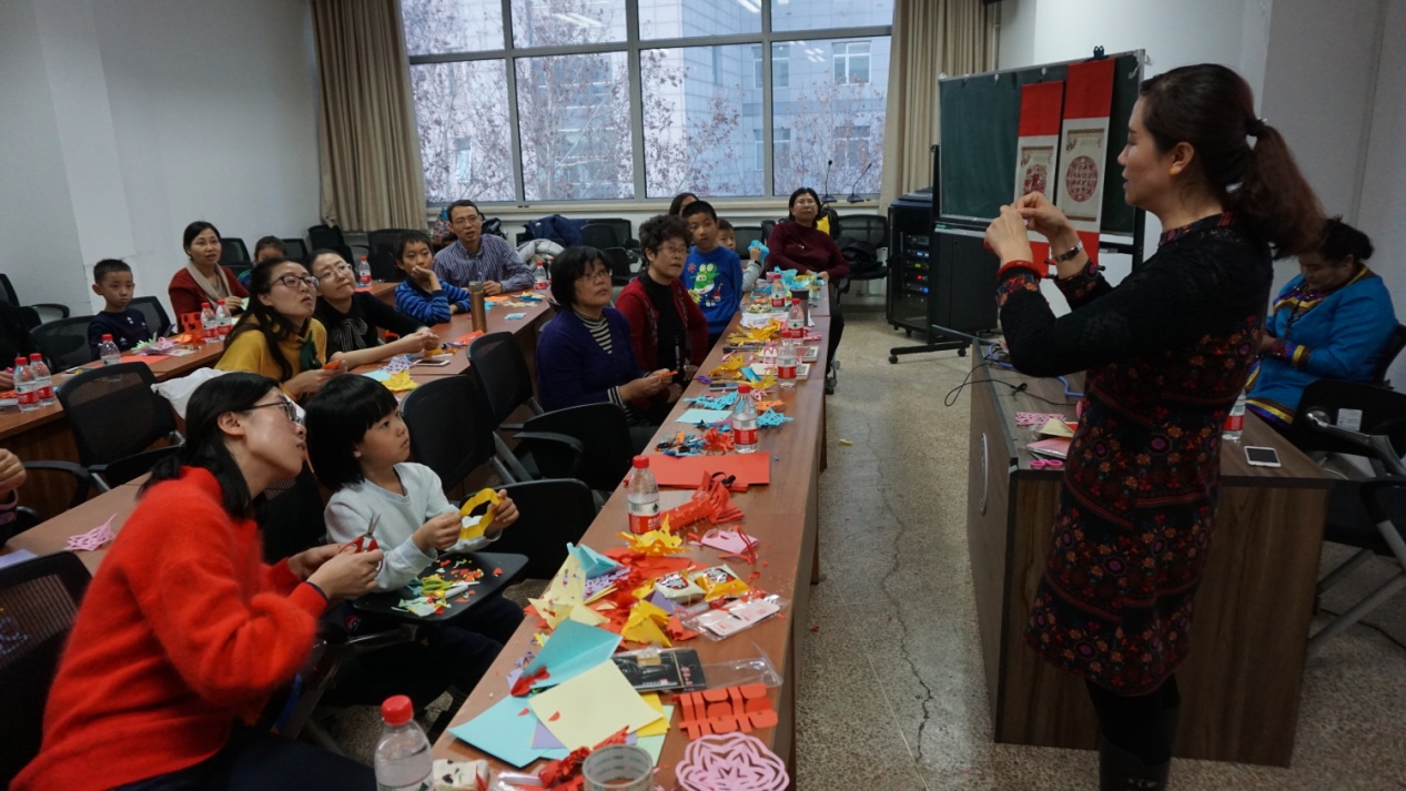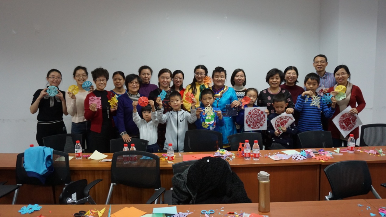 2017年12月22日下午,yl23455永利工会在前主楼5层5043会议室举办了“剪纸民间艺术进校园”活动,特邀国家级非遗传承人、民间剪纸艺术家郑蝴蝶和刘晓迪两位老师进行剪纸教学,yl23455永利工会主席周晓文教授,北京市民间文艺家协会理事、北师大yl23455永利民间文学研究所杨利慧教授,yl23455永利办公室马然主任出席并致辞,我院部分教职工和家属小朋友共计30余人参加了本次活动。 郑蝴蝶老师和刘晓迪老师首先向大家简要介绍了我国民间剪纸的渊源与流派,以及一些大家耳熟能详的剪纸歌谣。现场小朋友参与演示,当起了志愿小助教,给大家带来了欢乐。 随后,两位民间艺术家进行现场教学,教大家剪纸。现场师生和小朋友们拿起手里的剪刀,剪出美好,剪出心中的希望,会议室内春意融融,欢声一片。起初大家有些担心,因从来没有做过剪纸,怕学不好。但刘晓迪老师鼓励大家,她说,“天然的、不受任何限制的想象是做好剪纸的第一步”。在两位民间艺术家的鼓励和指导下,现场师生和小朋友们纷纷动手,发挥自己的想象力,剪出了自己的第一张原创作品。 最后,郑老师把自己现场创作的作品分送给大家留念,刘老师贴心地为每一位小朋友赠送了和自己属相匹配的剪纸,大家一起欢乐地照相留念。