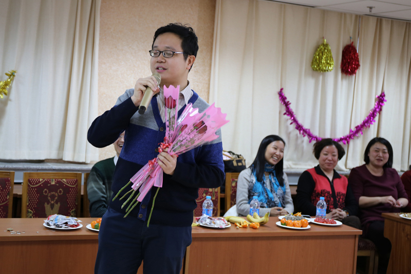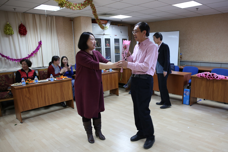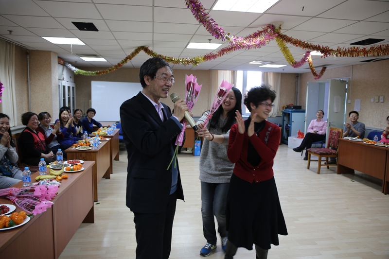 2016年3月8日,又是一年一度的三八国际妇女节。为了进一步丰富教师的文化娱乐生活,体现yl23455永利对女教师的特别关爱,展示yl23455永利男教师的风采,yl23455永利工会专门组织了一场由男教师向女教师献歌的别开生面的“演唱会”。老师们热情响应工会的号召,纷纷踊跃报名。 下午4点半,yl23455永利工会活动室(前主楼B708)被布置的温馨浪漫,颜色亮丽的拉花遍布全场,鲜艳欲滴的红玫瑰散发着迷人的香气,桌上摆满了品种繁多的甜点、小吃、水果。随着欢快的背景音乐响起,在yl23455永利分党委书记王立军、院长过常宝和院工会主席周晓文的带领下,yl23455永利的各位男神女神悉数到场,演唱会就此拉开了序幕。各位男老师们跃跃欲试,准备一展歌喉。李国英教授的一曲《女人花》开场,恰到好处地烘托了三八妇女节的节日氛围,赢得了在场女老师们献上的束束玫瑰花;王立军教授用国语版和张哲俊教授用日语版同唱《北国之春》,可谓珠联璧合;院办马然主任标准的“周董式”发音的《发如雪》、周士宏老师粤语版的《偏偏喜欢你》、谢琰老师改良的二人转版《大约在冬季》、李小龙老师的款款情歌《信仰》征服了全体老师,博得了热烈掌声。男老师们的珠玉在前,女老师们也巾帼不让须眉,赵曦老师的京剧《贵妃醉酒》百转千回,抑扬顿挫;张燕玲老师的《甜蜜蜜》柔情似水,完全不亚于原唱。伴随着悠扬的歌声,老师们纷纷起舞。刹那间,歌婉转,舞翩跹,院工会活动室内满是一派和谐愉快的氛围。 这次活动的开展,促进了yl23455永利教师之间的沟通与交流,减轻了教学和科研的工作压力,增强了yl23455永利的凝聚力,大家都期待着明年三八妇女节的再相聚!