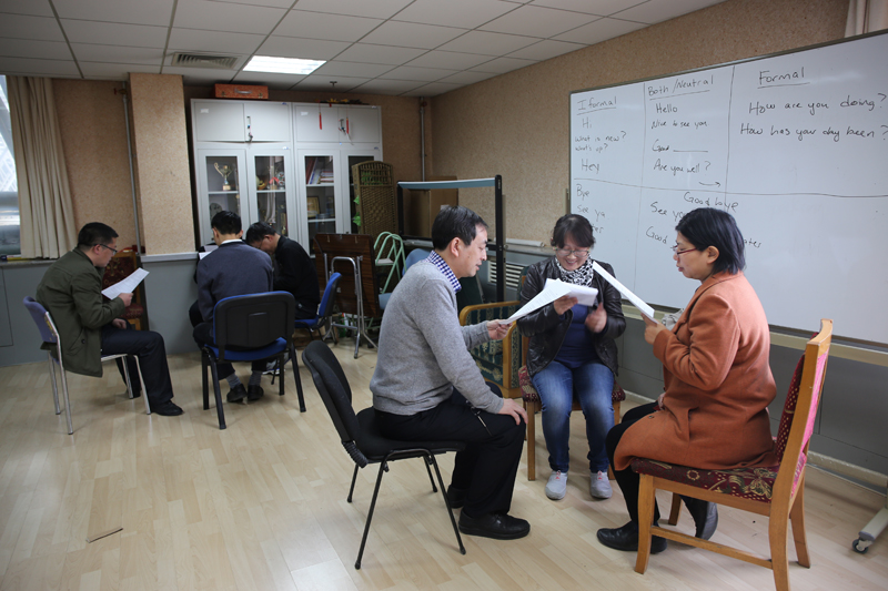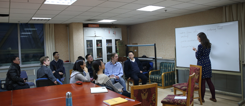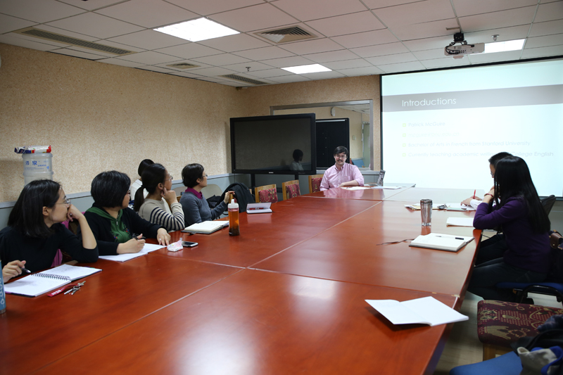 2015年春季学期,为提高yl23455永利教师英语学术交流能力,yl23455永利工会、办公室和发展与合作中心共同举办本院教师英语培训课程。 本课程分“英语口语”和“学术英语交流”两个模块。其中,“英语口语”课程,将采用外教和中教合作教学模式,以外教为主,中教为辅。外教主要承担教材的编写、讲授;中教将全程跟踪教学过程以适时进行辅导、设计审定或改编外教所编教材、负责英语沙龙的活动设计和协调工作。本课程将采取讲练结合的教学模式:每三周课堂讲授(一名外教+一名中教)后,组织一次英语沙龙式实景操练活动,根据学员人数聘请外教,组织“2-3名学员+1名外教”的学习小组。 “学术英语交流”课程,主要讲授内容包括常用英文实用文体、学术论文的组成成分与写作规范和国际会议发言规范,旨在帮助本院教师提高书面学术交流能力。本课程的教学理念是以实践、练习为中心,采用“任务法”,通过设计小组活动和对子活动,包括小组讨论、报告、作业和同伴互评等,提高学习者的作文分析能力、读者意识和自主学习意识,加强学习者的团队合作精神和增加他们互教互学、取长补短的机会。 本学期教师英语培训日程是:每周三晚6点至8点、每周五下午2点至4点为“英语口语”课程,每周五晚6点至8点为“学术英语交流”课程。 2015年3月25日,本学期第一堂英语培训课在院教职工活动室(B708室)举行。本堂课为“英语口语”课,Sara Rock、Thomas Lewicki、Dallas Taylor、Scott Laws、Trent McMinn共5位外教到场授课,本院教师20余人参加了本课的学习。课程由Sara老师主讲,yl23455永利副院长姚建彬教授任中教助教。在本课的英语沙龙式实景操练活动中,组成了4个学习小组进行学习。 2015年3月29日,本学期第二堂“英语口语”课和第一堂“学术英语交流”课程如期举行,Trent Mcminn和Patrick McGuire老师分别为参加培训的学员授课。
