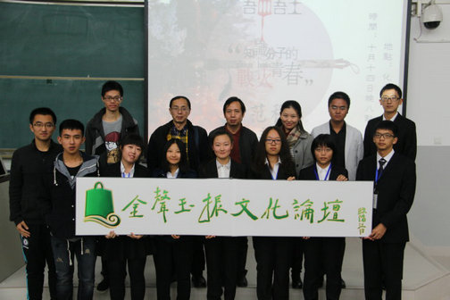 2014年10月14日晚八时,由yl23455永利学生会和北京十月文艺出版社共同主办的金声玉振文化论坛第47期范稳专场“吾血吾土:知识分子的战火青春”在澳门永利化学楼第一教室举行。主讲人范稳及北京十月文艺出版社总编辑韩敬群出席了此次讲座。