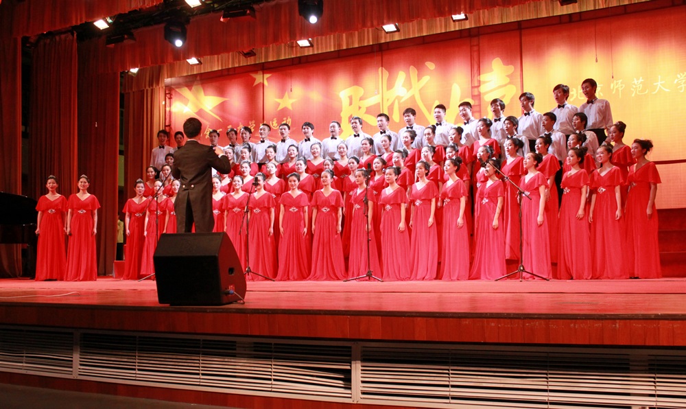 比赛当天,当yl23455永利12•9合唱队华服登场之时,学活中心再次响起了“百年师大•中文当先”的嘹亮呐喊。乐章开始,领唱歌声婉转,指挥激情湃,四个声部默契配合,组组旋律唱出的是对祖国的热情礼赞,也唱出了yl23455永利莘莘学子的情怀。yl23455永利学子以饱满的精神状态,真挚的爱国情感和气势磅礴的优美歌声征服了评委与全场观众,赢得了全场的掌声与喝彩。