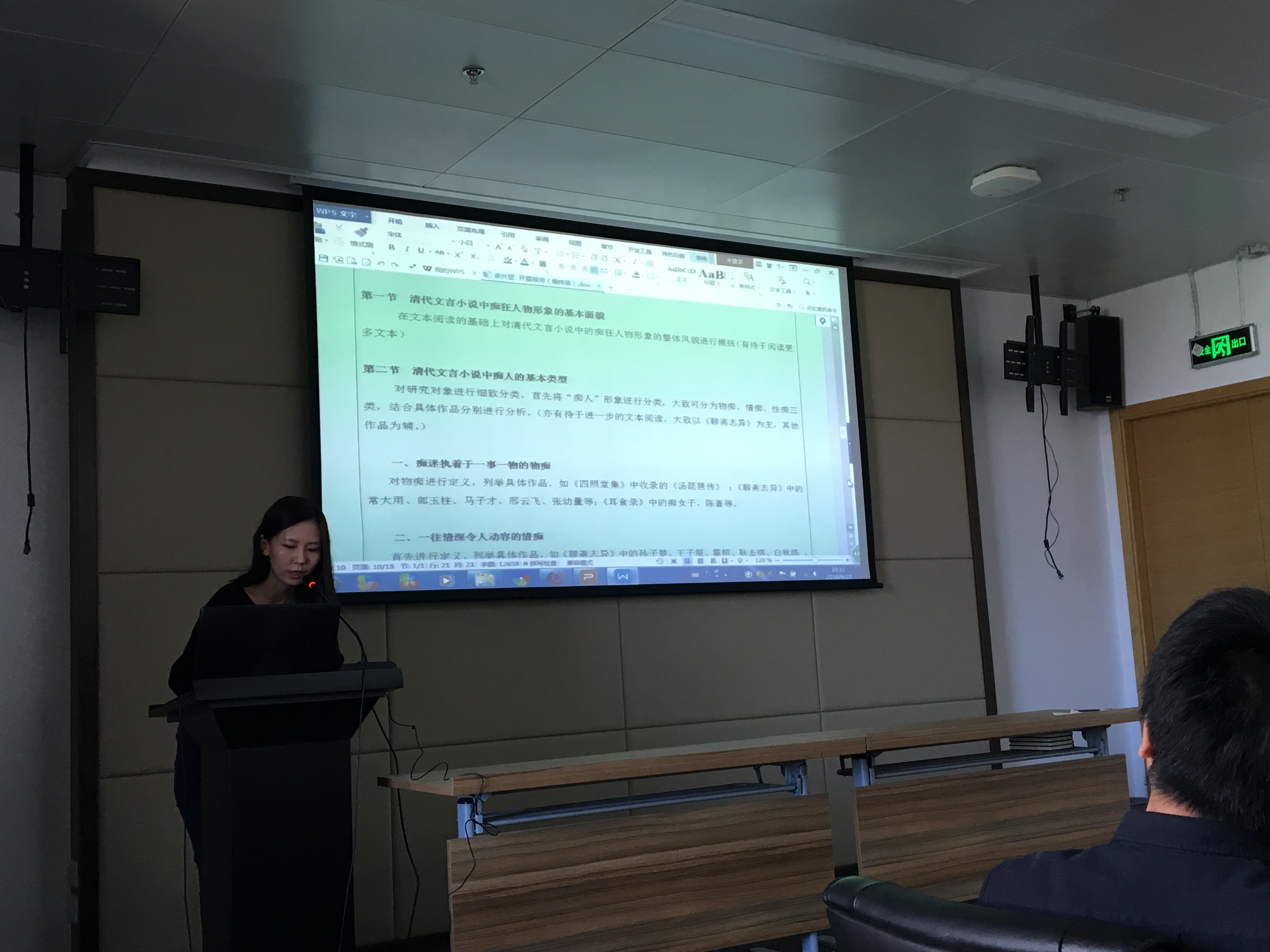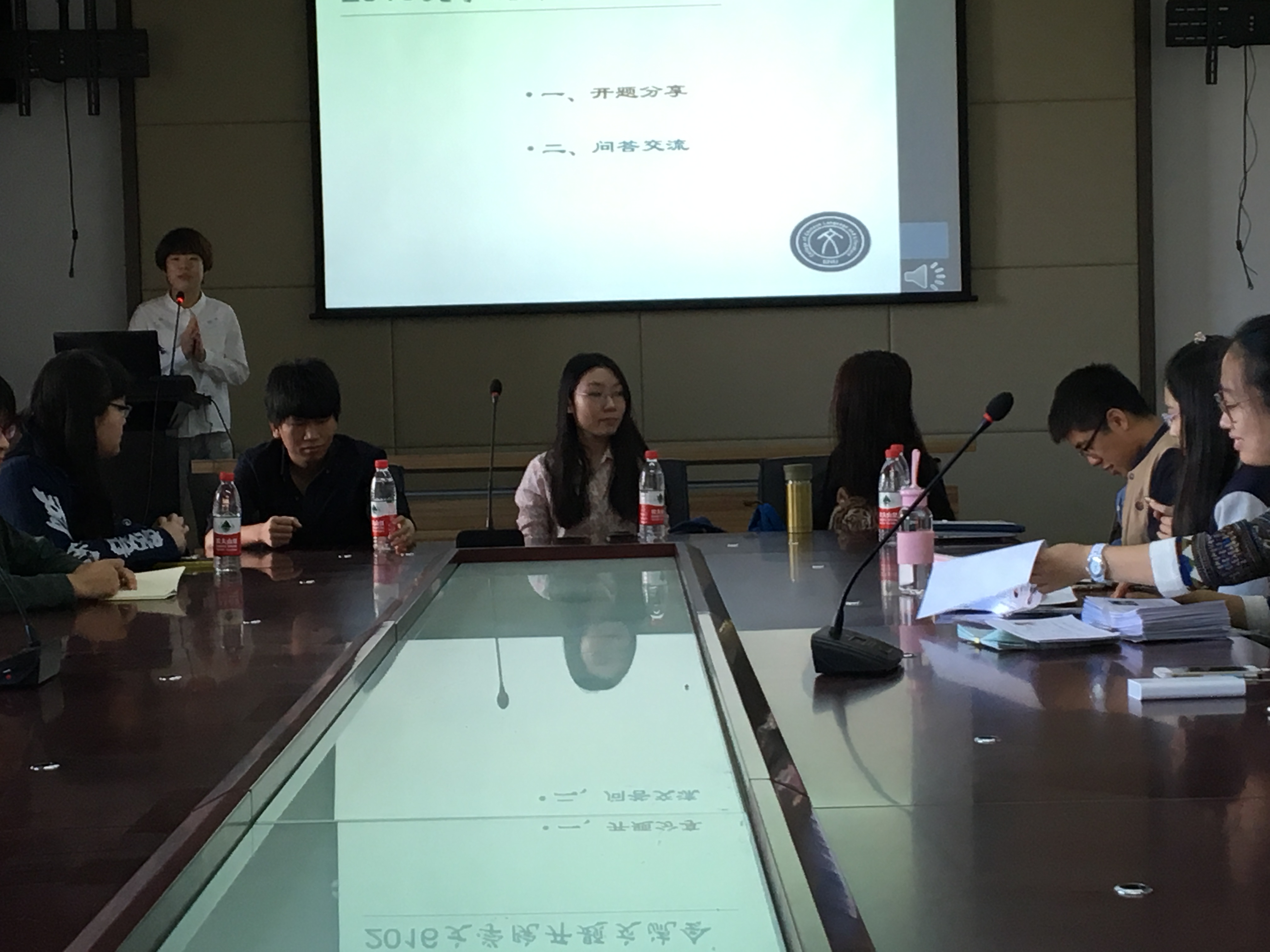 余兴亚师姐重点讲解了论文的创新点和问题意识,在发言最后,余师姐认为对待开题答辩的最适宜的心态是在自己的研究思路初具框架的基础上寻求富有学术经验的导师们最中肯最切实的指导意见。