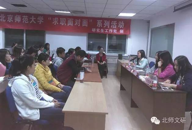 据了解,此次教师求职经验分享会是求职面对面系列活动的第二场,针对公务员、媒体、企业等岗位经验分享会还将陆续举办。同学们可以通过“北师文研”提前获知分享会信息。