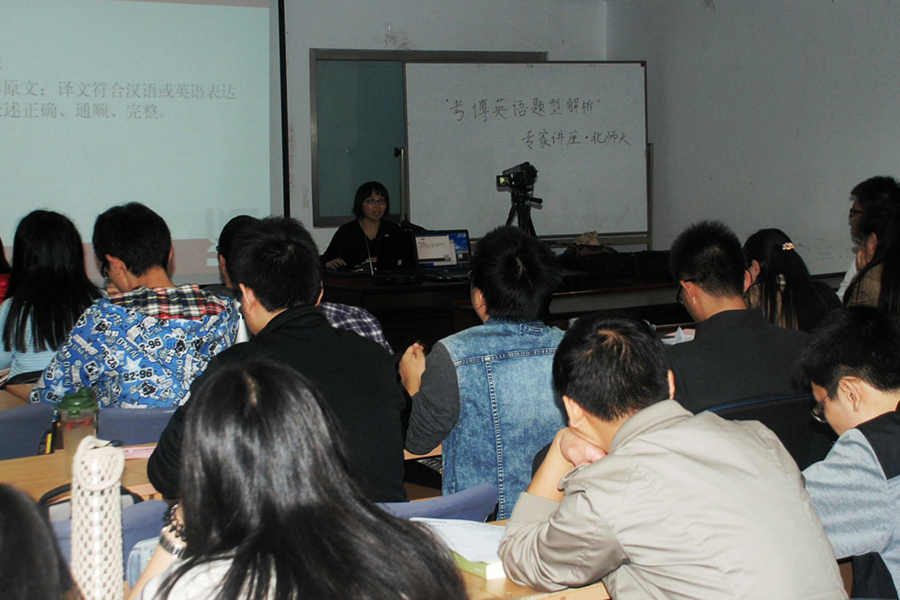 10月20日晚六点半,yl23455永利研究生会实践部在主楼A708室举办了考博英语讲座,邀请学苑教育的严老师为师大学子讲析澳门永利考博英语的题型和解题方法。 讲座伊始,严老师向大家说明了澳门永利考博英语试题的综合情况,即自主命题,题量大、难度深、涉及范围广,因此北师大考博英语难度是相对较高的。同时,严老师提醒在座同学,北师大的考博英语真题很少外泄流出,市面上所见的考博原题的真实性值得怀疑,同学们在下载和购买考博英语资料时一定要提高警惕,以免耽误备考进程。 接下来,严老师为同学们具体介绍了北师大考博英语的题型。北师大考博英语题型与北师大研究生入学英语水平考试题型基本一致。整张试卷共分三大部分:阅读理解、翻译、作文。其中阅读理解一共7篇,占总分值的75%。这部分的出题趋势是篇章增多、难度加大、花样翻出。翻译题型则包含英译汉和汉译英两大部分,其特点是生词量较大、句子结构复杂、内容文化性较强。 在讲座中,严老师将考试技巧与考博英语原题相结合,向大家详细剖析了翻译题型的答题技巧。严老师指出,翻译题的内容文化性较强,句子结构复杂,要求考生能够正确理解原文,使译文符合汉语或英语表达习惯,表述正确、通顺、完整。严老师细心地提醒同学们,在翻译时应特别注意灵活翻译定语从句,可适当调整语序,采取分译合译相结合的方法译文;在遇到被动句时,尽量翻译为主动语序等。同学们与严老师进行了积极的交流与互动,获益匪浅。 此次考博英语讲座是yl23455永利研究生会在求职月为同学们举办的一次指导讲座,旨在服务全校有意读博的硕士研究生同学。 通过本次讲座中严老师的耐心指导,同学初步了解了师大考博英语的概况、题型,并掌握了考博英语翻译题的几个诀窍,对同学们的复习有很大帮助。(撰稿:赵想 审核:李世宽)
