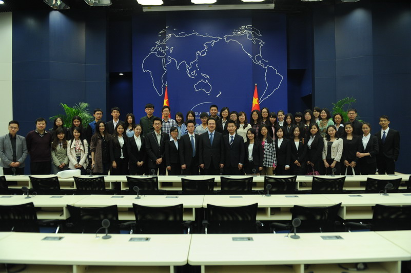2014年4月2日,yl23455永利研究生会应外交部公共外交办公室邀请,与中国人民大学学生代表共同参加了中国人民共和国外交部2014年开放日活动。 在外交部新闻司工作人员的热情接待与细致讲解下,参观团首先观看了中国外交六十年图片展,展览回顾了建国初期中国外交攻坚克难的艰辛历程,改革开放以来扩大对外交流的累累硕果,以及新世纪中国外交在新的历史时期所面对的机遇与挑战。其中不乏珍贵的历史档案原件和影像资料。随后,同学们参观了外国记者新闻中心,并走进蓝厅,旁听外交部例行记者发布会。外交部新闻司副司长、外交部新闻发言人洪磊就马航事件的最新进展进行信息发布,并回答了中外记者的提问。发布会后,洪磊副司长与学生代表合影留念,并就新闻发言人制度与同学们亲切交流。 外交部亚洲司、新闻司、翻译室、干部司等四位青年干部与学生进行了座谈,介绍了周边外交、公共外交、外交翻译和外交部干部考录等工作,生动讲 述外交工作的台前幕后、外交人员的酸甜苦辣,并回答了同学们关于外交形势、报考就业等方面的问题。座谈会气氛热烈,互动积极,交流深入。 本次活动是本学期yl23455永利研究生会参与的一次较大规模的对外交流活动,活动取得圆满成功。参与同学纷纷表示,关心国家大事,关注祖国外交事业的发展是我们青年学生义不容辞的责任。走进外交部,既增进了对中国外交事业的了解,也拓展了相关领域的视野,更加坚定了努力学习、参与和投身外交事业的信念。 撰稿人刘宙鹏吴铃 图片来源外交部公共外交办公室 另附外交部公共外交办公室为中国人民大学和澳门永利学生举办“开放日”活动的相关新闻链接:http://www.fmprc.gov.cn/mfa_chn/wjdt_611265/sjxw_611273/t1143855.shtml