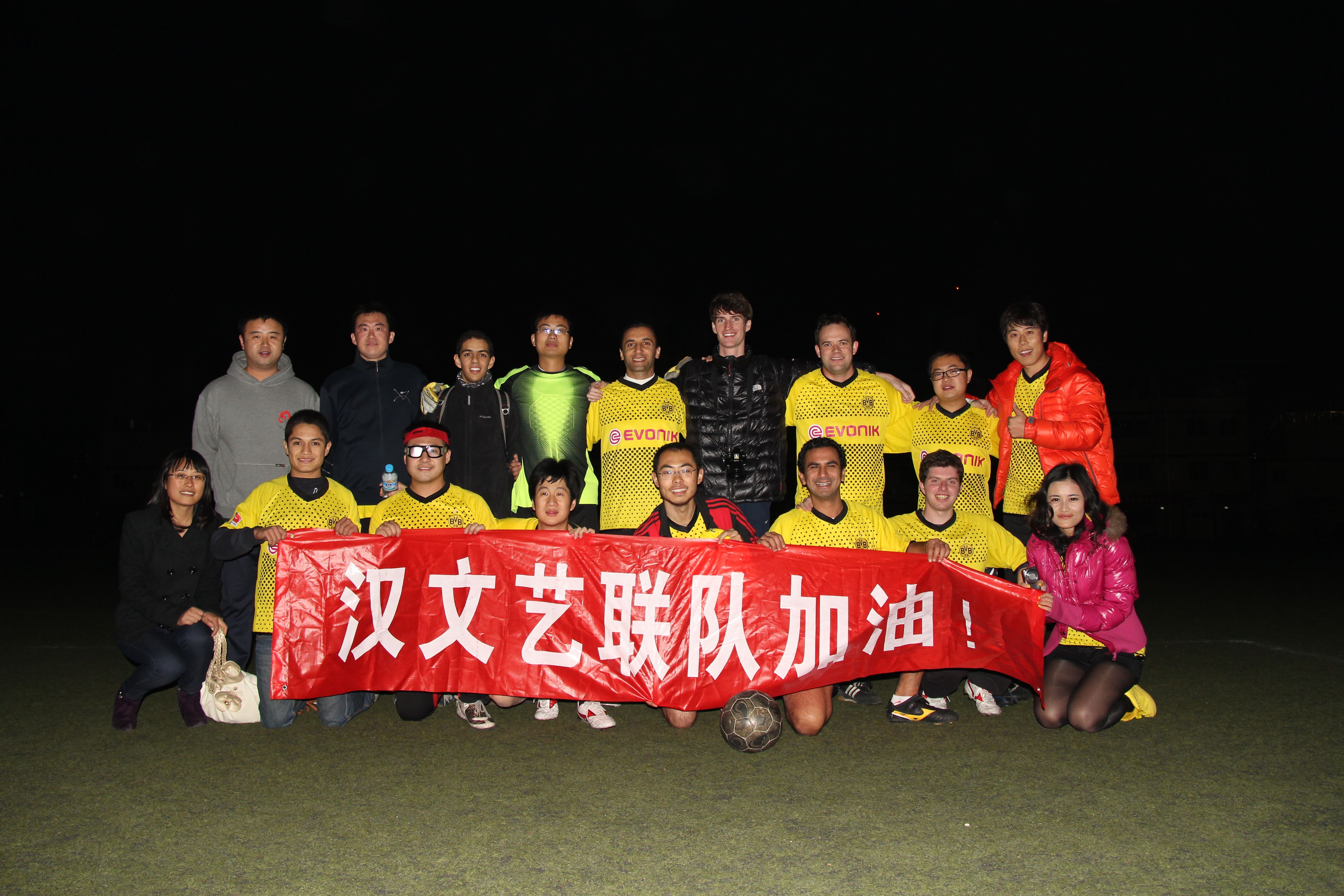 澳门永利2011年度研究生足球联赛正在火热进行中。今年yl23455永利与汉语文化学院、艺术与传媒学院合力组建成汉文艺联队,参加了比赛。
