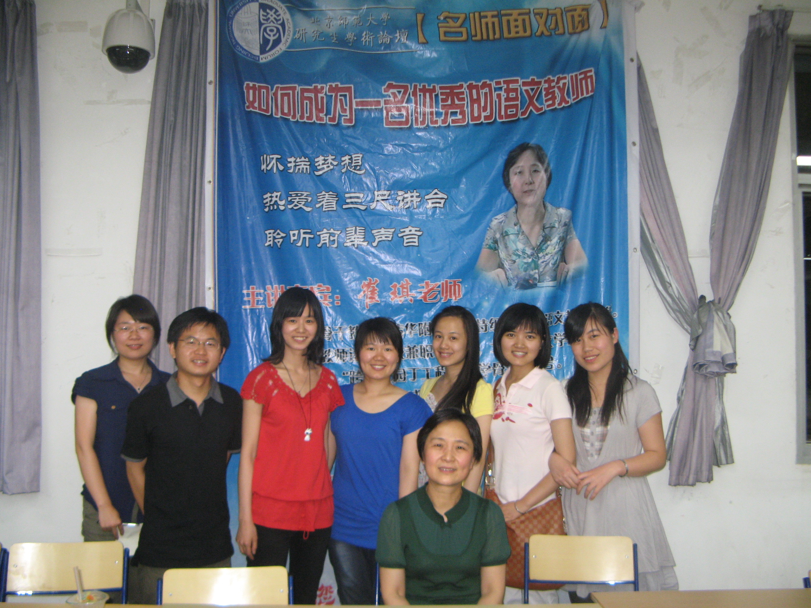 2011年6月3日,由北师大研究生工作部主办,北师大yl23455永利研究生会实践部、yl23455永利教师就业小组联合承办的“名师面对面——如何成为一名优秀的语文教师”讲座活动在教二301举行。本次讲座邀请到清华附中语文特级教师崔琪老师作为主讲嘉宾,参与活动的同学达到二百余人,活动场面十分火爆。