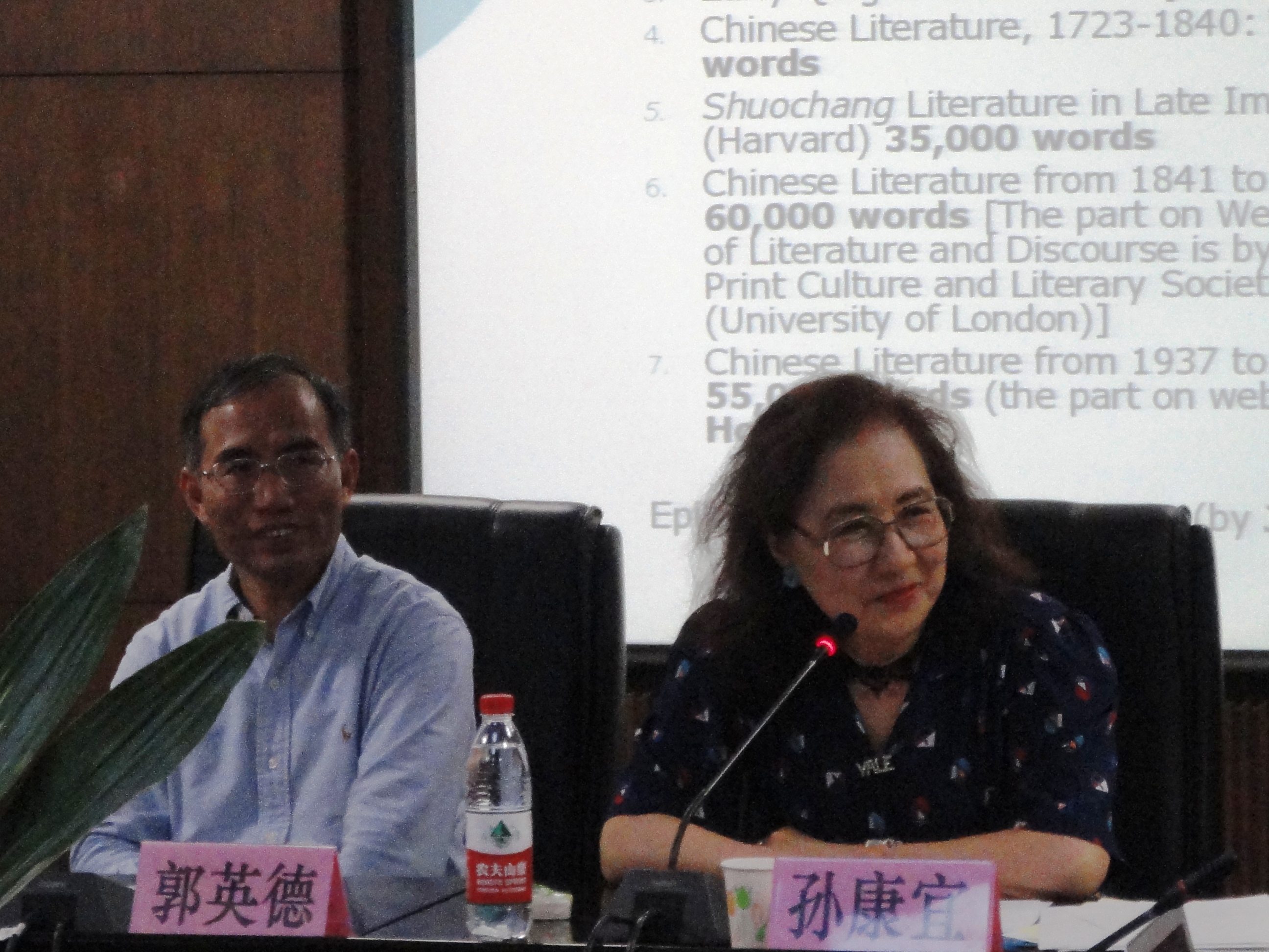 2011年5月24日下午三点,国际知名学者、耶鲁大学东亚语言文学系教授、东亚研究所主任孙康宜应邀在yl23455永利励耘学术报告厅做了一场题为“介绍剑桥中国文学史”的精彩讲座。讲座由yl23455永利古代文学教授郭英德教授主持。