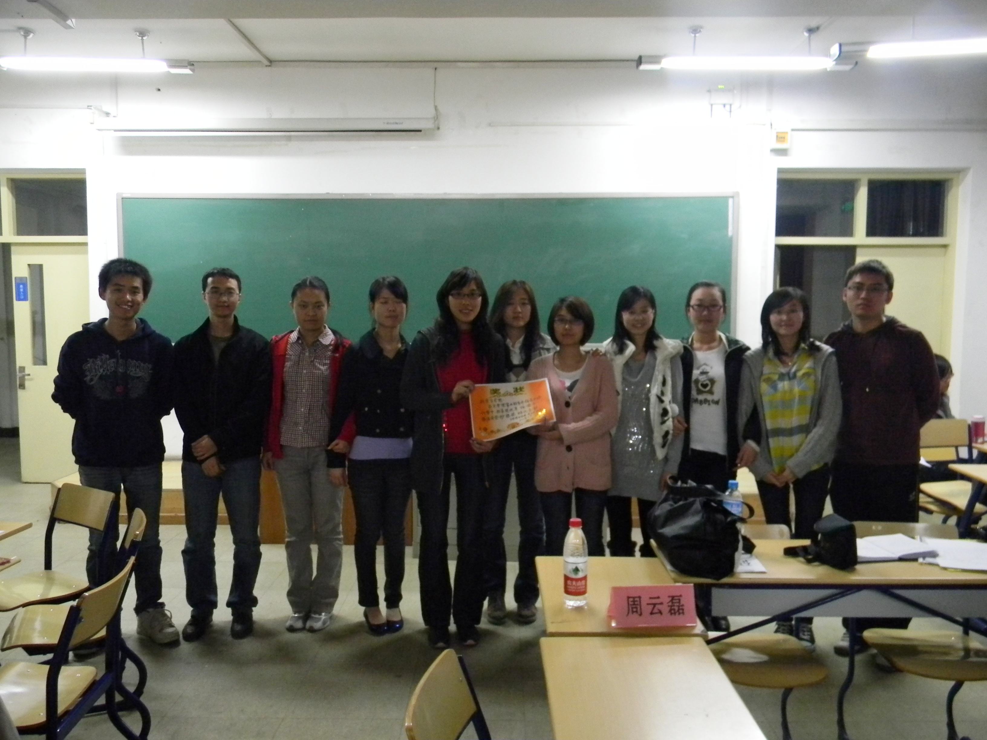 3月27日,模拟新闻发布会现场,六小组被分成3个大组。在每一大组中,一个小组扮演新闻发布方,另一小组扮演媒体记者,分别以“核危机背景下的救灾—日本政府何以应对”、“学生集体中毒事件”“网站泄露用户资料事件”为案例,按照正规新闻发布会的要求和相关程序,进行了约20分钟的模拟新闻发布会。研究生会组作为“网站泄露用户资料事件”的新闻发言人,针对记者的提问冷静应答,语言风趣精炼,观点独到,不时获得观众阵阵掌声。