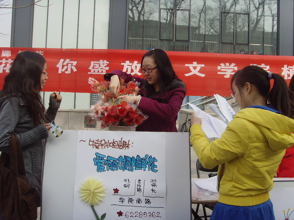 2011年3月12日,在植树节到来之际,yl23455永利研究生会权益部联合爱丽娜鲜花,举办了“鲜花为你盛开”yl23455永利植树节特别活动。