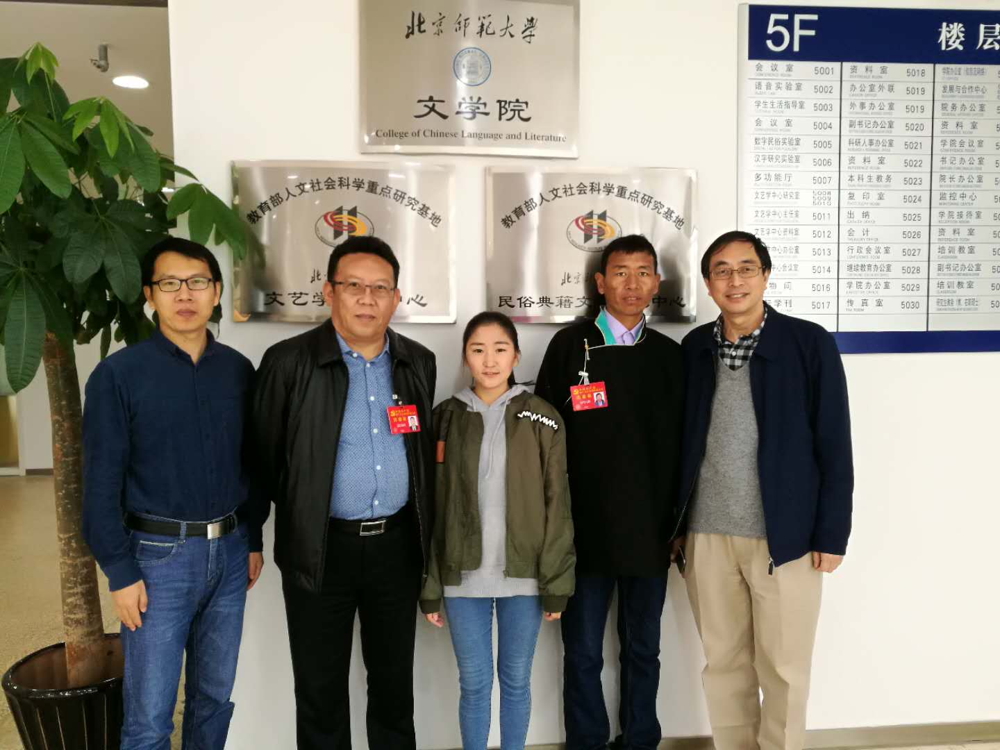 2017年10月25日上午,十九大西藏自治区代表团两位党代表边巴扎西、尼玛石曲百忙之中专程到我院看望慰问西藏籍学生,yl23455永利党委书记王立军、副书记周云磊陪同参加。 两位代表详细了解学生的在校学习生活情况,勉励学生要珍惜北师大优越的学习环境,勤勉学习,自立自强。2015级免费师范生赤列旦增表示,远在北京求学能得到家乡领导专程的关怀和鼓励,感到十分亲切和感动,并表示自己一定倍加努力学习,不辜负党和家乡人民的期望,学成后建设祖国和家乡。