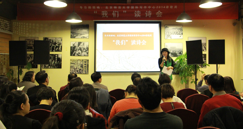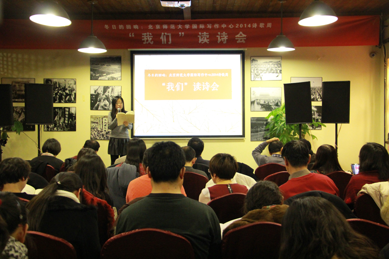 2014年12月20日,作为澳门永利国际写作中心2014诗歌周最后一场活动“冬日的回响:‘我们’诗歌会”在老故事餐厅成功举办,依旧吸引了来自各界朋友们的光临,诵读出一曲冬日的强音。朗诵会在国际写作中心总干事苗绿女士的主持下进行,北师大国际写作中心执行主任张清华教授,著名诗歌理论家、首都师范大学吴思敬教授,中央民族大学敬文东教授以及“我们”诗社的多位诗人出席了本次诗歌朗诵会。本场诗歌会共分为五个回合。 “我们——北土城散文诗群”成立于2009年3月14日,主要成员有周庆荣、灵焚、亚楠、爱斐儿等人,这是中国现当代文学史上第一个以散文诗命名的诗人群。 国际写作中心执行主任张清华教授首先向点评嘉宾以及“我们”散文诗群体的诗人们表示致意,向散文诗表示敬意,他指出:在“我们”群体的努力下,散文诗写作近些年来,展开了丰富的面貌,取得丰硕的成果。另外,他还表示:通过梳理我国散文诗发展历程,散文诗在我国具有特殊性,对于汉语诗歌来说,源远流长,要共同期待其辉煌的未来。 随后,著名诗歌理论家、首都师范大学吴思敬教授致辞。他表示,“我们”散文诗群成立以来,无论在散文诗创作还是研究方面都有重大作用,因此他向到场所有来宾表示敬意。 第一回合“周庆荣的‘预言’”点评嘉宾是澳门永利张清华教授,对于周庆荣,张清华教授提出以下两点:周庆荣诗歌首先具有哲学性,其次,他的诗歌具有心理性。作为“我们”的发起人之一的周庆荣,他为大家朗诵了他的《沉默的砖头》,随后,资深主持人张宏用他专业的朗诵给听众带来一首《数字中国史》,他说诗歌就是冬日里最温暖的朋友,朗诵又会让诗歌成为站起来的巨人,周庆荣用他这首诗歌来膜拜生命、敬仰历史。 第二回为“灵焚的‘剧场’”,首都师范大学孙晓娅教授作为本场的点评嘉宾,指出灵焚诗歌不好进入,一旦进入,就有一片广阔的天空。孙晓娅形容灵焚是“千年被尘封的会吐泡泡的鱼”,灵焚身上有灵魂燃烧的尼采,有拿着笔锋挥舞的堂吉诃德,在他身上可以看到穿着衣服的亚当和学院式的波德莱尔。薛梅女士为大家带来《走向净界》。 诗歌会第三回点评嘉宾是澳门永利谭五昌副教授,第三回的主题是“亚楠的‘在天边’”。谭五昌说看似被边缘化的散文诗,在中国诗歌发行量中却是最多,这来自于“我们”散文诗群诗人们的共同努力。生活在新疆高地,用感恩的心态去观察新疆的山川景物,用南方人的思维和表达方式去表现广阔的边疆风情。中国诗歌研究中心朗诵团团长汪葆明女士与听众一同分享了《与向日葵一起开放》的美妙。 作为最后一场个人回合,“爱斐儿的‘倒影’”在敬文东教授的主持下进行。敬文东教授说:爱斐儿对不洁的事务采取了远离的态度,面对这个充满病症的世界,爱斐儿用自己的方式道出了自己对世界的远离与对散文诗的共鸣。诗人爱斐儿自己朗诵了《大户人家》。当日,诗人的女儿与女婿也来到现场,用一首《倒影》为母亲献礼。“谢谢,谢谢你让我旁观自己的倒影。”坐在台下的张清华教授也按耐不住对这首诗歌的喜爱,再次为大家朗诵了一遍《倒影》。 最后一回“所有的风景”,收纳了“我们”诗群中优秀的诗篇,在《等待一场雪》中《过故人庄》,享受《同里小镇》里的《一缕阳光》,在诗人潇潇的主持下,一首首优美的散文诗和着音乐缓缓倾泻,全场朗诵会在娜日琪琪格七夕节的风烟(《七夕,风烟起》)结束。 作为“我们”发起人的周庆荣做了全场总结。他说冬日,在这个温暖的小房间相聚,我们能听见了苏醒的声音,在苏醒里面发现了思想的骨头,我们这个时代需要思想的重量。面对人越来越渺小的世界,他希望,每一个写作者、每一位诗人可以自己温暖自己。 此外,北师大首届创作硕士的同学们也参与了本次朗诵会。她们用自己动情的朗诵表达了对诗人的敬意和对诗歌的热爱,赢得了现场嘉宾的频频称赞。