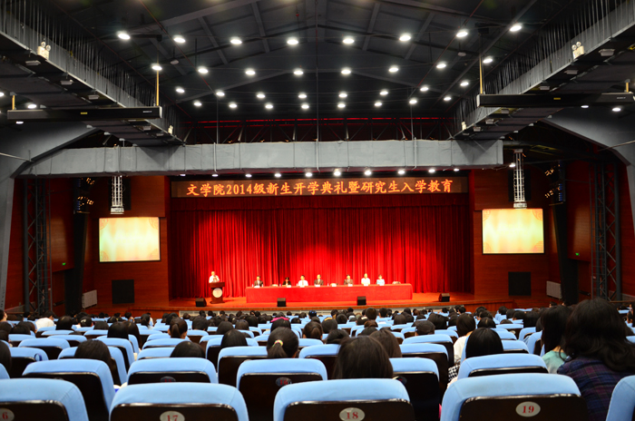 2014年9月12日上午,yl23455永利2014级新生开学典礼在学校学生活动中心隆重举行。2014级全体本科生、研究生以及留学生共500余人参加了此次开学典礼。yl23455永利分党委书记王立军,院长过常宝,副院长姚建彬、张清华,院党委副书记方红珊、周云磊等全体院领导和部分研究所所长、辅导员代表出席了典礼。典礼由yl23455永利分党委副书记周云磊主持。