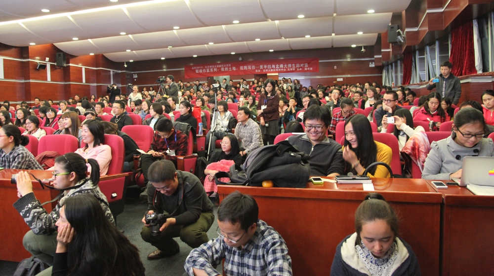在提问环节,贾平凹对现场学生提出的各种问题作了热情而风趣的回答。针对“旧文人气息与现代性如何平衡”的问题,贾平凹表示,他从来不认为自己是“旧文人”,因为生活在当代社会中,不论画画、写字还是收藏,都一定会带有现代的趣味在其中。而对于“《废都》的故事与作者本人生命体验的关系”,贾平凹表示,《废都》中的苦闷情绪来源于当时的时代背景和他个人的特殊境遇,因此既是源于个人体验,又超越了个人体验。现场提问的一位同学表示,贾平凹的一篇名为《一棵小桃树》的文章曾伴随自己走过了一生中最坎坷的日子,并现场赠送贾平凹老师一只苹果,有趣的插曲也使现场气氛愈加热烈。