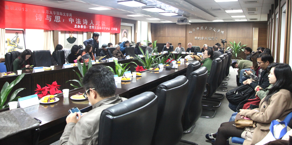 2013年10月29日,由澳门永利国际写作中心、yl23455永利主办的“金秋2013•澳门永利国际文学周”系列活动之“思与诗:中法诗人对谈”在yl23455永利励耘学术报告厅举行。法国诗人穆沙夫妇,法语诗歌翻译家李金佳,中国社科院外文所研究员、翻译家余中先,诗人吉狄马加、食指、莫非、宋琳、蓝蓝、潇潇、爱斐儿、吕约,诗歌批评家孙晓娅,yl23455永利教授、诗人任洪渊,yl23455永利教授、文学评论家张柠,澳门永利国际写作中心副主任、yl23455永利副教授梁振华,yl23455永利副教授、诗歌批评家谭五昌出席对谈,对中法诗歌、中西诗歌之间的互动关系进行了深入的讨论,对诗和思的复杂关系进行了广泛的探究。对谈由法语诗歌翻译家、诗人树才,澳门永利国际写作中心主任、yl23455永利教授张清华主持。