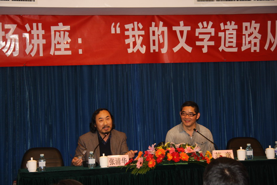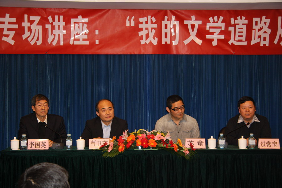 受聘仪式结束后,苏童作了题为“我的文学道路从这里开始“的精彩讲演。他深情回忆了在母校求学时的美好时光和初涉写作之路时的艰辛,并将母校称之为其思想人格塑造的故乡。随后他与现场师生就文学、阅读、写作、个人体验等话题展开热烈互动。