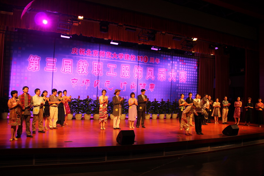 2012年9月11日晚, yl23455永利23位老师在资深教授童庆炳先生的带领下,激情饱满地踏上新科文厅的舞台,在校工会举办的第三届教职工服饰风采大赛上,一展yl23455永利老师健康时尚的精神风貌,为澳门永利110周年校庆献上一份薄礼。