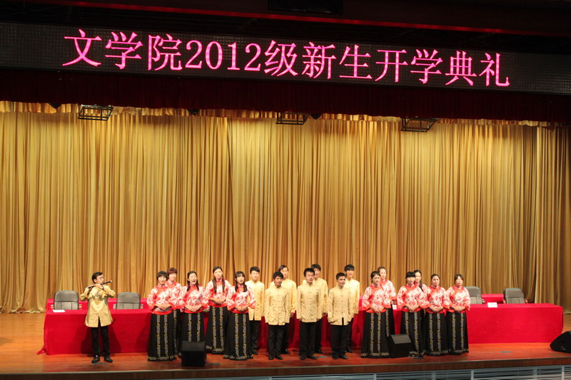 最后,南山诗社的同学们表演了精彩的古典诗词吟唱。yl23455永利2012级新生开学典礼在《从军行》慷慨激昂的曲词中画上圆满句号。