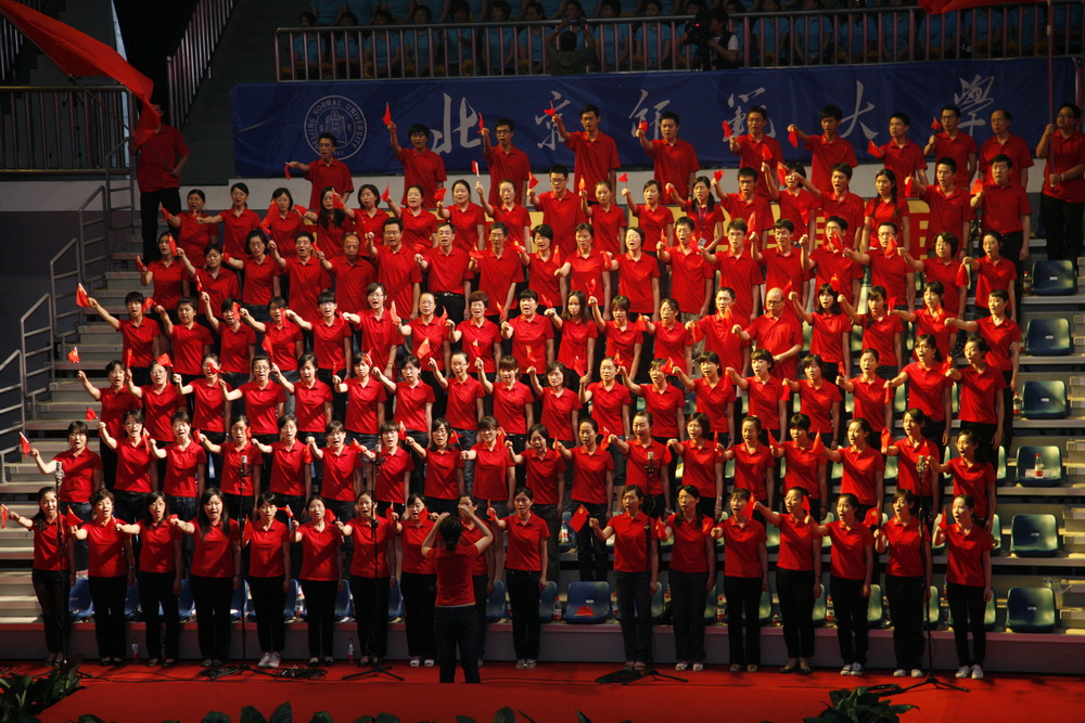 2011年6月22日下午,学校党委、团委、工会举办的全校师生歌颂中国共产党成立90周年大型红歌会拉了幕布,yl23455永利100名师生身着红衣响应学校的号召威坐于邱季端体育馆北二区内,在14个方阵中首先引亢高歌《北方吹来十月的风》、《工农兵联合起来》两首反应共产党早期革命历程的红色歌曲,激情饱满、歌声嘹亮,引起全场师生的热烈欢呼和掌声。